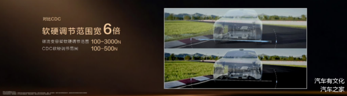 以深蓝L06官方资料中所给出数据进行举例,传统CDC电磁悬架的调节频率约为每秒50-100次,而磁流变悬架却能达到惊人的每秒1000次;在软硬调节范围上,CDC通常在100-500N之间,磁流变悬架则可达100-3000N,调节范围拓宽了整整6倍。