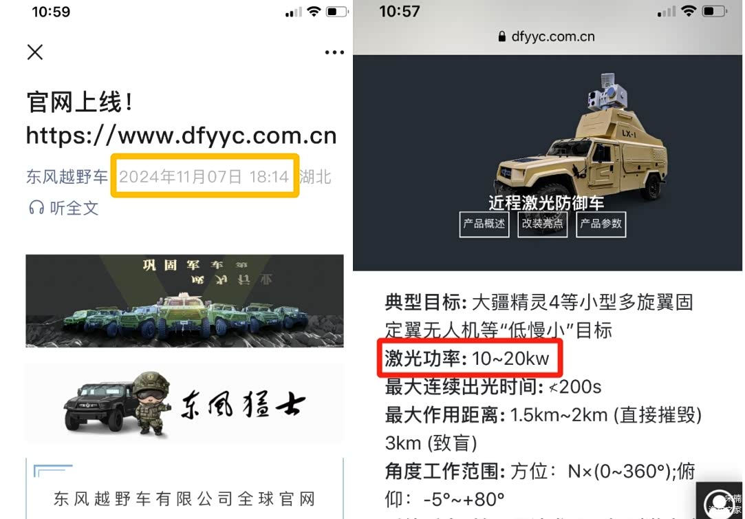 1、基于全新一代东风猛士车族6x6战术平台(非承载车身架构标准轴距)激光武器系统得到实战验证!