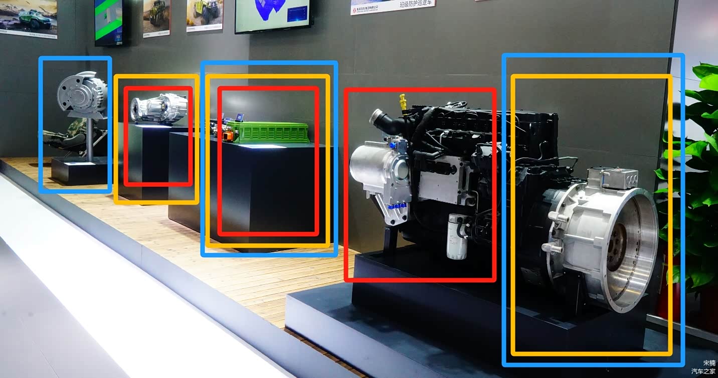 外挂BSG启发电机并串联ISG启发电机的纵置柴油发动机,在实际应用中是要单独设定。与此同时,在东风汽车展台,不仅公开了BSG\ISG启发电机与发动机关联的技术状态,并与标注化动力电池模组、全时四\六驱分动器以及轮毂电机同时展现。