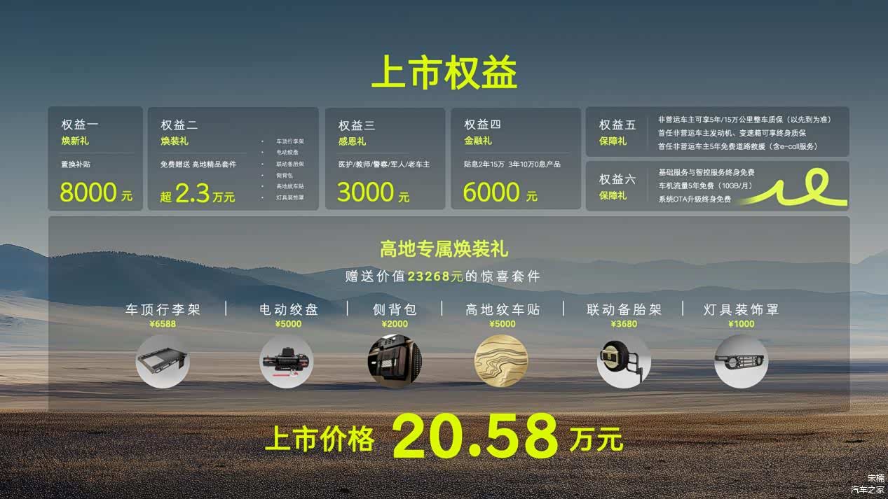 新车推出六大权益,包含价值超2.3万元的焕装礼(赠前绞盘、行李架等)。未来,212将依托WY及WB平台,推出混动皮卡、三门版及中大型越野车,并规划10余个越野公园,深化全球市场定制化策略。