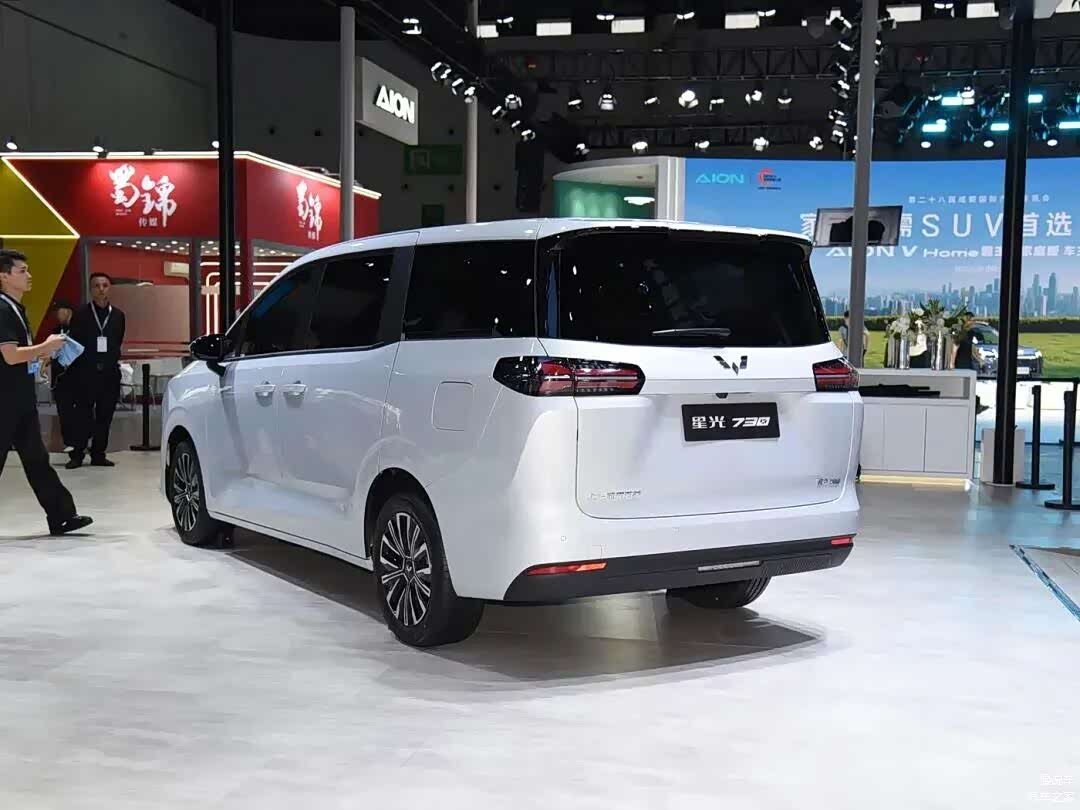 外观方面, 五菱星光730(图片 | 参数 | 询价)采用全新的设计风格,整体造型更简约精致,并根据不同动力形式提供不同的外观造型,其中燃油版和插混版会配备大尺寸纺锤体进气格栅,风格与丰田埃尔法类似,两侧大灯采用双线条设计,颇具攻击性。而纯电动版本则采用封闭式格栅设计,视觉效果更简洁。车身侧面,新车车身修长,平直的线条搭配贯穿式车窗设计,营造出悬浮式车顶效果,D柱采用隐藏式设计,配备常规造型的车门把手,并采用侧滑门开启方式。尾部方面,车尾整体设计较为简洁,平直的尾灯造型与车头设计形成呼应。其上方配备了扰流板,倒车雷达、全景影像等配置也都出现在了新车上。