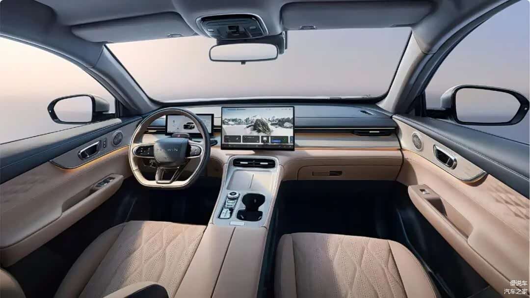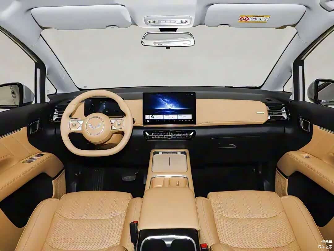 内饰方面,采用简洁的座舱风格设计,使用了多种材质以及颜色进行搭配。另外,新车提供了悬浮式3.5英寸仪表屏和12.8英寸悬浮式中控屏,搭载Ling OS系统,支持4G网络、车联网、手机APP远程控制、车载蓝牙、HUAWEI HiCar/Carlink手机互联、OTA升等功能。座椅布局方面,新车车内空间不算特别充沛,采用2+2+3的七座布局。