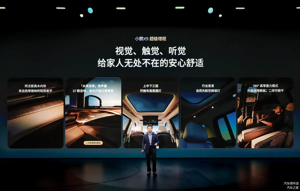 小鹏X9超级增程作为全球续航最长大七座,以1602km超长续航、全维安全、极致静谧、百变空间及越级舒适配置,重新定义大七座家庭出行体验。新车基于全球标准开发,历时800天严苛测试,跨越20国330城,以“带着你的全世界,去看全世界”为理念,为全球家庭打造真正安心、舒适的全场景出行伙伴。