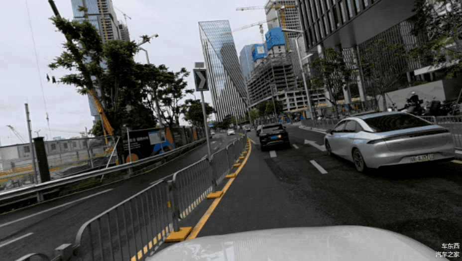 在本次测试路线上,有因为施工导致的不规则道路合流,系统也可以准确判断,并在不停车的情况下实现流畅通过。