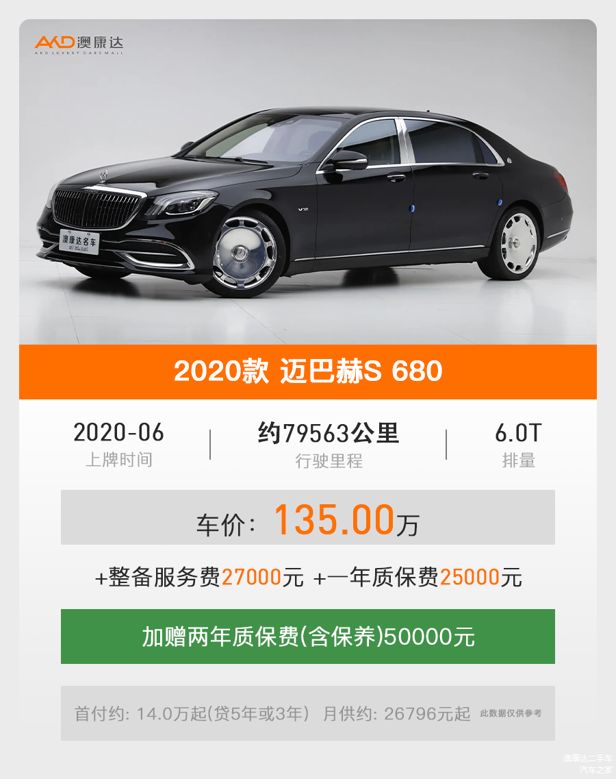 要说起顶级行政轿车,那相信迈巴赫S级是必不可少的,绝对是老板们都爱的一款轿车,而介绍这辆澳康达二手车还是系列的最高级,即为2020款 迈巴赫S 680,当年落地超过300万的存在!仅仅是“680”这3个数字就能说明一切,且这台还是“三眼皮”的经典款,重重buff叠加,很难不爱!