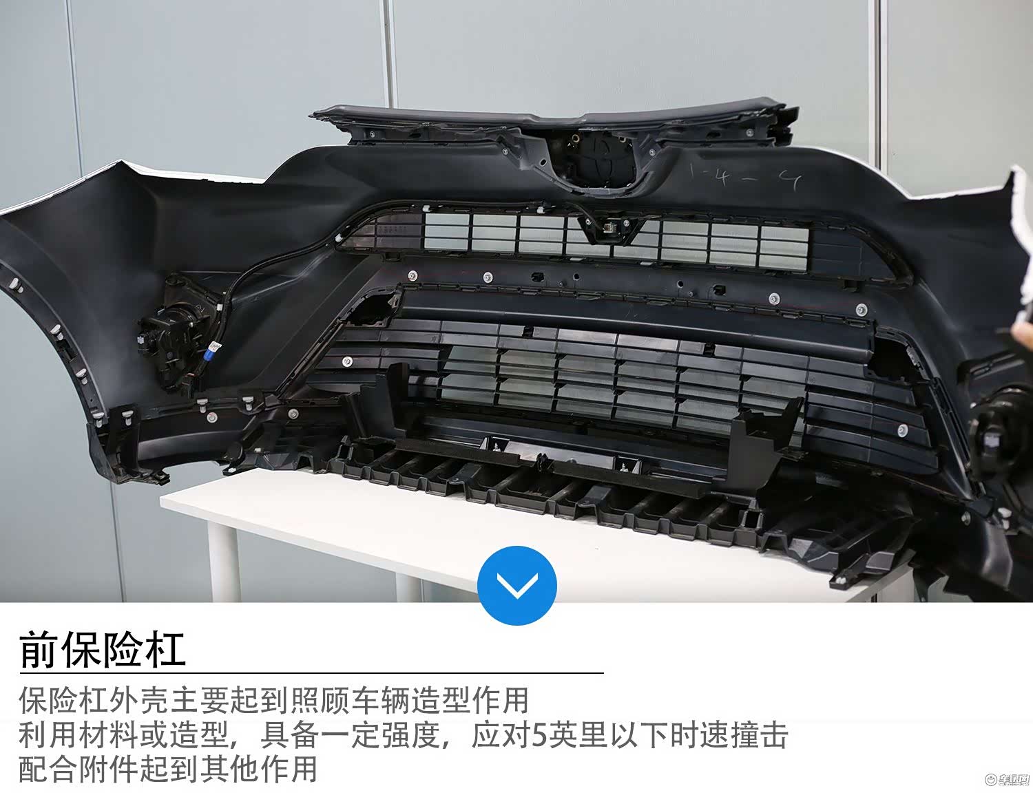 前保险杠外壳主要起照顾车身造型的作用,并且具备一定强度,以应对相当低时速下的撞击,这些通过材料和造型等手段就可以实现。
