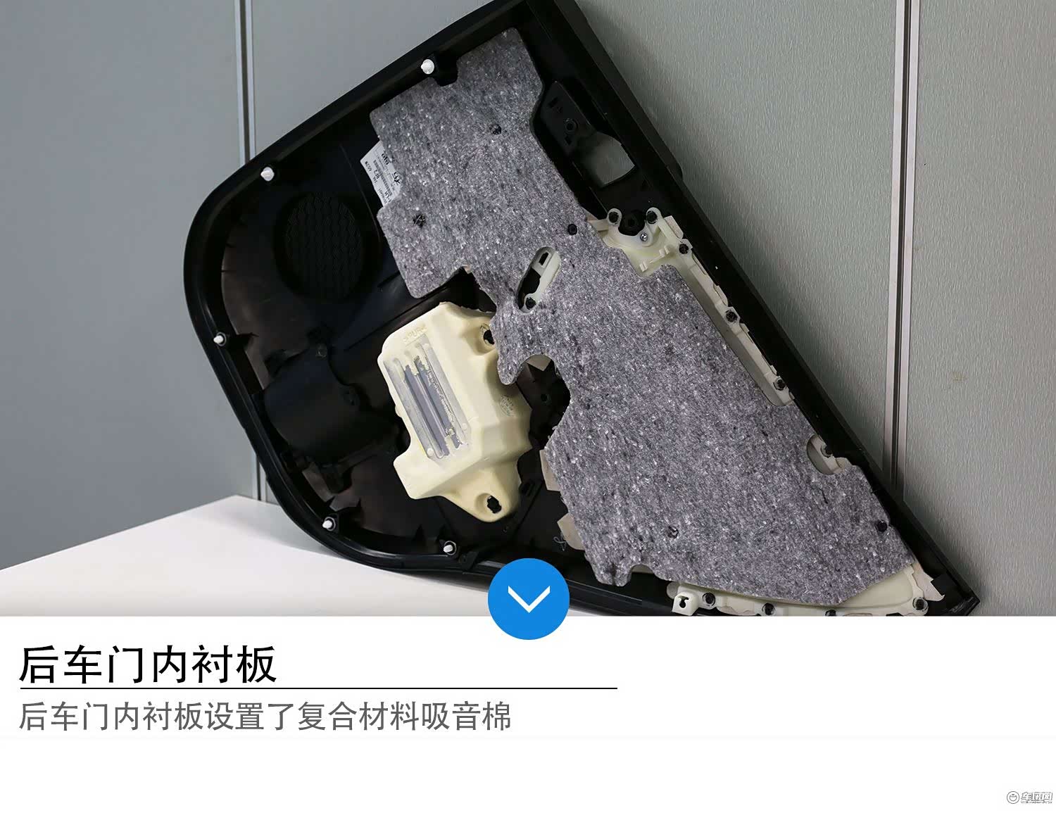 荣放后车门内衬板同样设置了大面积吸音材料。