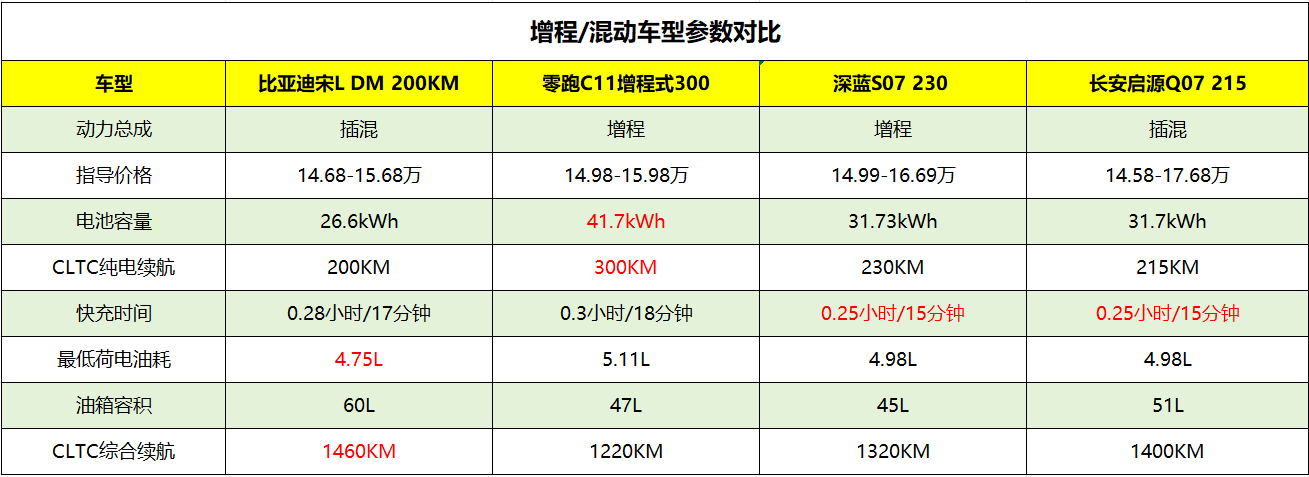 何不趁着国补/地补/车企补贴大放送、且没有购置税的时候,置换一辆新能源车呢?现在15万就能买到很好的中型SUV了,本期给大家推荐4款热门车,比亚迪宋L DM、零跑C11增程版、深蓝S07增程版、 长安启源Q07(图片 | 参数 | 询价),因为这4款SUV搭载了插混或增程动力系统,适合作为冬季用车选择,北方朋友能放心入手。