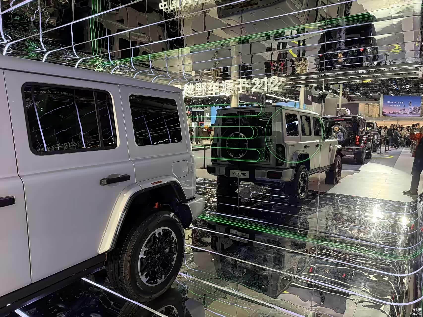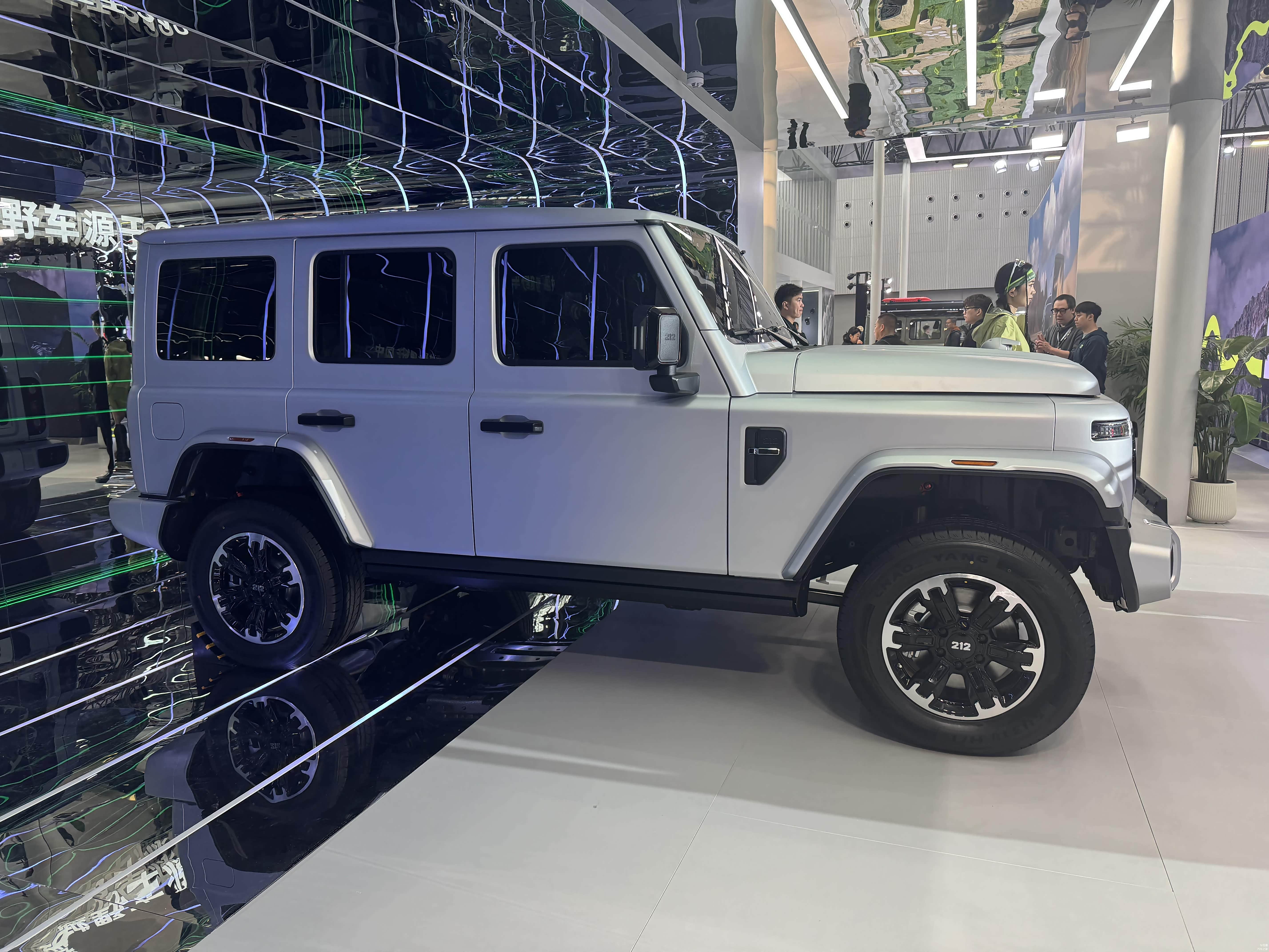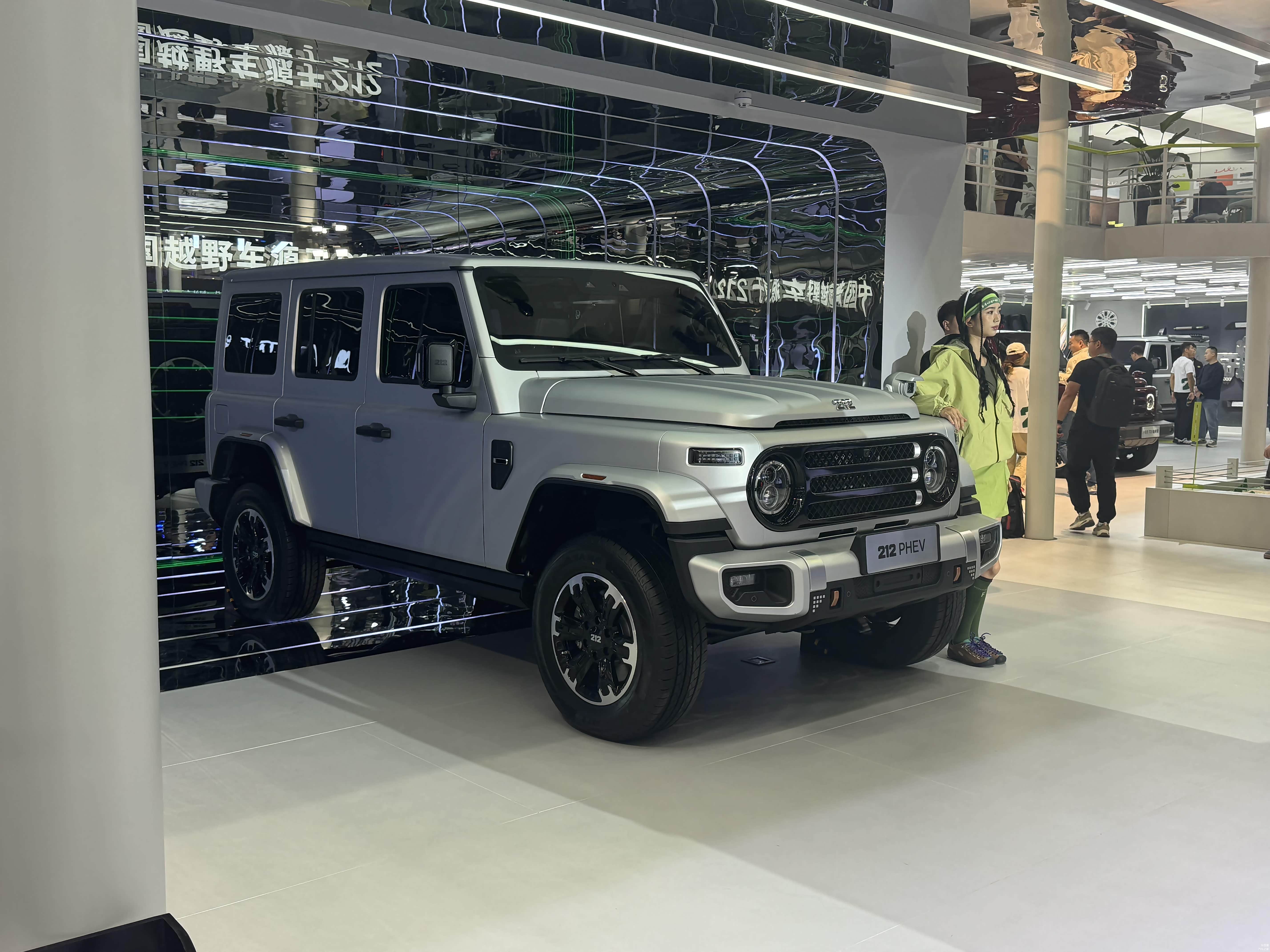 再看212 T01 PHEV插混版,它延续汽油车型硬核复古的设计,致敬经典。蚌式发动机盖、防空灯、三段式中网、分体式圆灯、长方形转向灯、复古车窗等经典设计元素重现。同时,粗犷的前后保险杠和轮眉,展现出硬派风格。车辆尾部采用经典的分体式车灯设计,配备外挂式备胎和侧开门设计,保留了一定通过性能。越野配置上,采用分时四驱系统,可切换高速四驱和低速四驱,提供前后桥差速锁(选装)、越野专用的OFFROAD模式,还配备陡坡缓降功能以及可断开防倾杆,为越野出行提供有力保障。