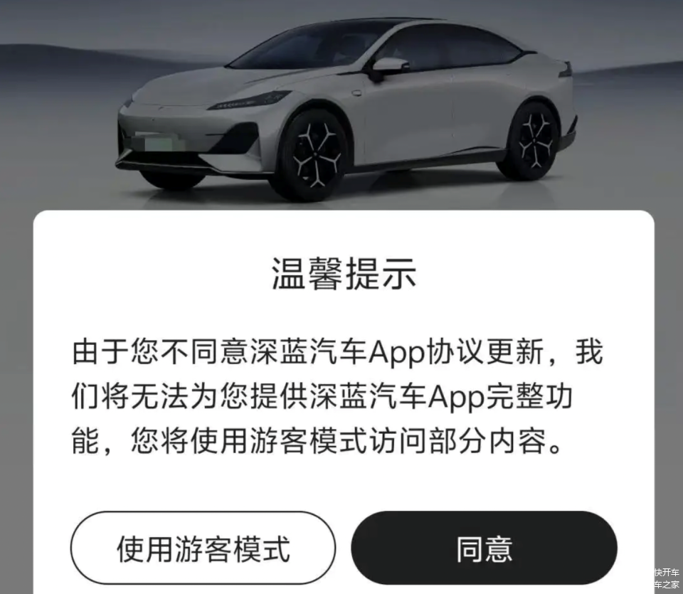 即使时任CEO在后续道歉了,但深蓝汽车后续的操作才叫瞠目结舌,首先就是更新了隐私协议,要求用户接受深蓝投放的“产品推广活动”,如果不同意,车机将进入到“游客模式”,无法使用更多功能。而且一部分车主在CEO的微博下方评论,也被拉黑。