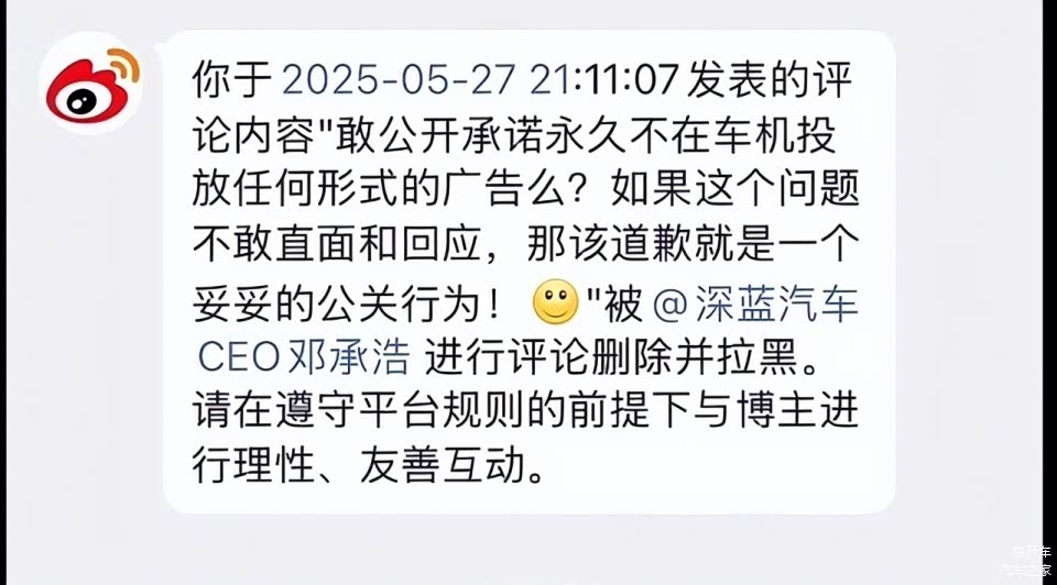 我们首先说说营销层面的问题,首当其冲的就是过去轰轰烈烈的“广告门”。此前有部分车主在用车的时候,发现自己爱车的车机被投放了深蓝自家的广告,引起公众质疑。