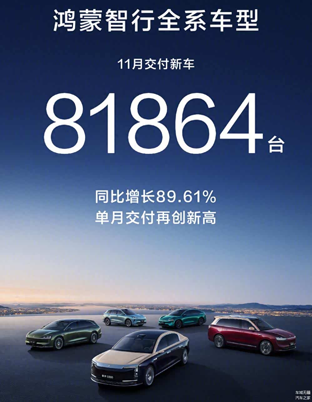十一月的新势力销量榜,再次被鸿蒙智行的战报点燃。全系81,864辆的月度交付数据,不仅意味着同比近90%的增长,更是将新势力阵营单月交付量推向了一个新高度。这个数字背后,远不止一个创纪录的符号,同时也预示着高端智能电动车市场的竞争格局正在发生深刻裂变。