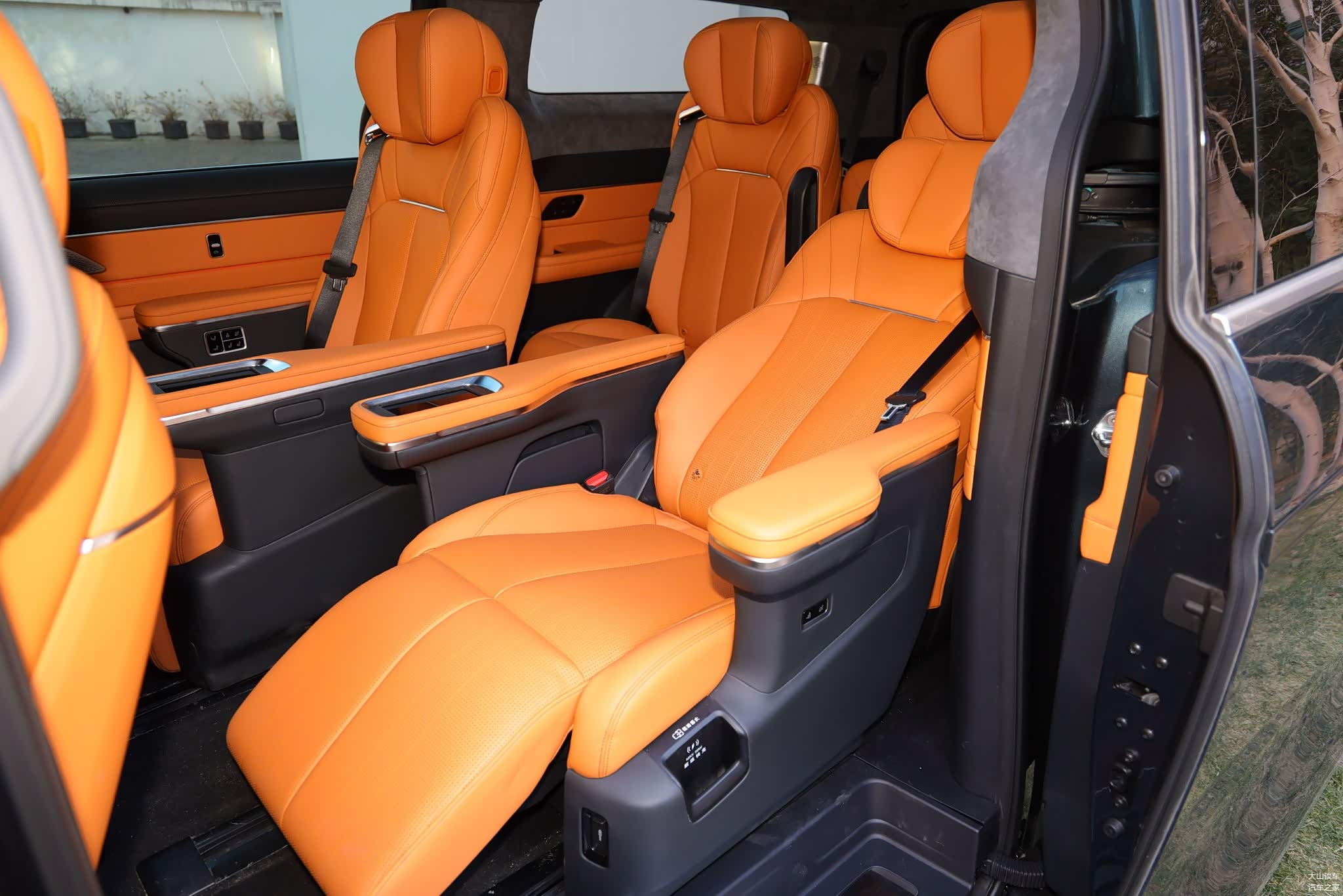 作为MPV的核心,银河V900在空间布局上玩出了新花样。它提供2+2+2六座、2+2+3七座和2+2+2+2八座三种座椅布局,几乎覆盖了从高端商务接待到多胎家庭出游的所有场景。第二排无疑是VIP席位,配备带电动腿托的双零重力座椅,通过扶手内侧的屏幕可独立控制通风、加热、按摩等多种功能,将舒适融入每一个细节。为了满足后排娱乐需求,一块17.3英寸的吸顶娱乐屏、双折叠小桌板、可实现制冷制热的9.1L智能冷暖箱(温度范围-6°C至50°C)一应俱全。