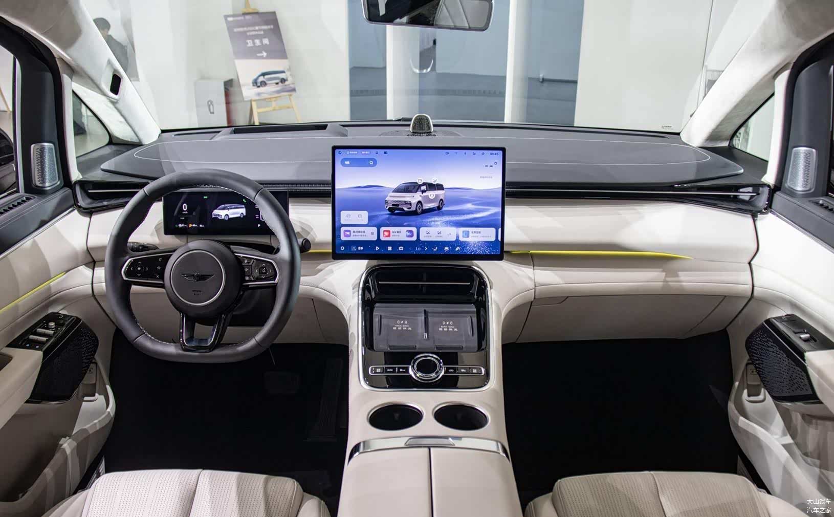车身侧面是其气势的最佳展示面。悬浮式车顶、电动侧滑门、20英寸密辐式大轮毂以及方便上下车的电动踏板,这些元素共同构建起浓厚的豪华商务气息。其长宽高达到5360/1998/1940mm,轴距为3200mm,尺寸全面超越了岚图梦想家等竞品,为内部空间的极致发挥创造了条件。