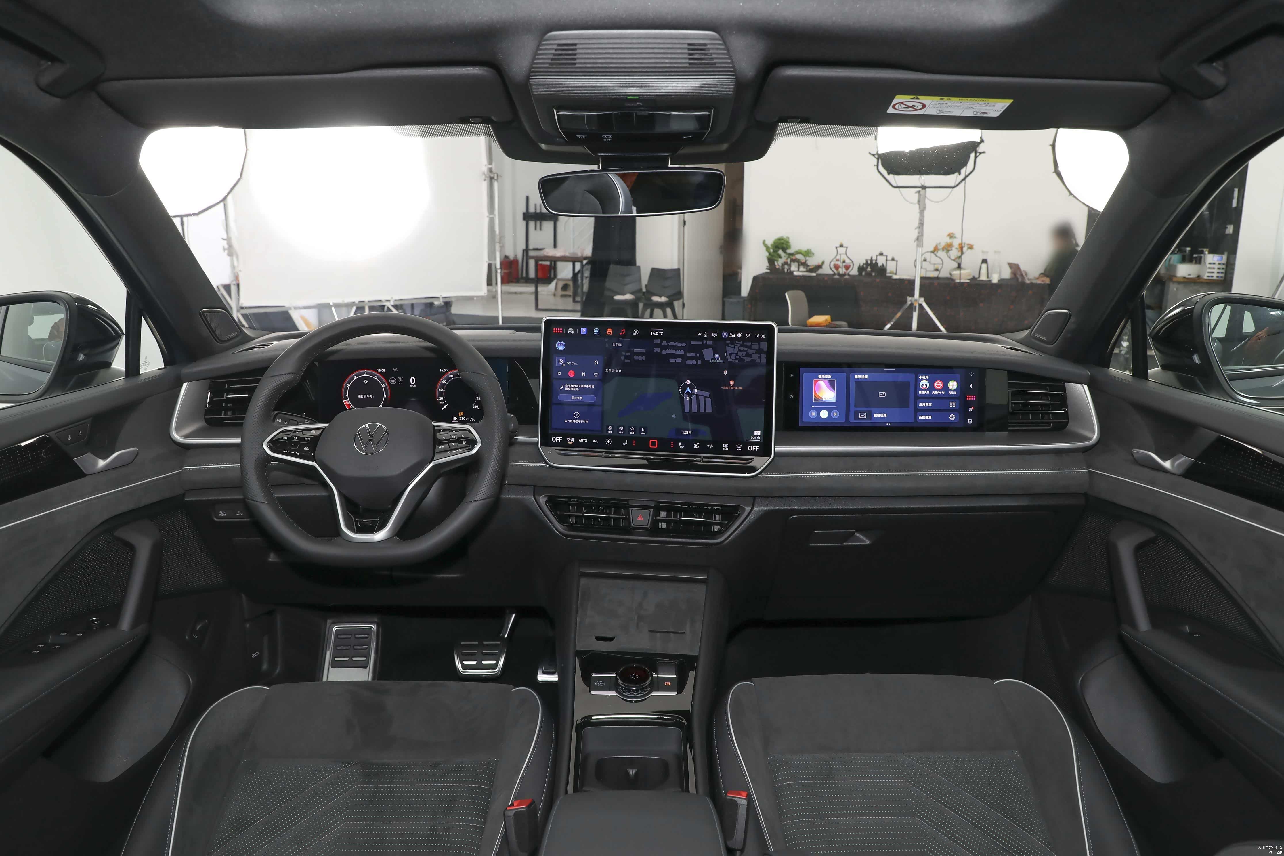 车尾方面,车顶设计了小鸭尾,搭配扰流板与高位刹车灯,运动属性十足。尾灯为贯穿式设计,内部结构清晰可见,点亮后辨识度很高。后包围则采用了黑色饰板包裹,R-Line版则加入了黑色蜂窝状纹路进行装饰。进一步提升运动属性。排气方面,采用了隐藏式的设计。