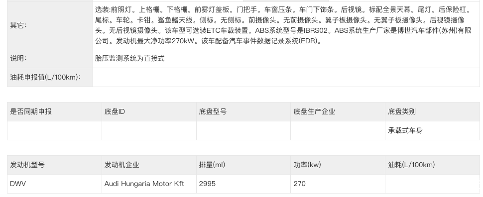 早在今年10月份,全新一代奥迪A6L便现身工信部的新车申报目录当中,不过当时仅申报了最大功率200千瓦的2.0T发动机版本。而根据最新的申报信息显示,全新一代奥迪A6L还支持配搭最大功率150千瓦的2.0T发动机和最大功率270千瓦的3.0T发动机,功率参数全面超过在售现款车型。