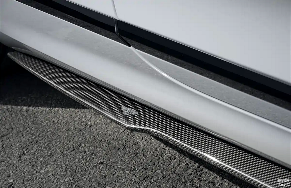 碳纤维侧裙为本次套件的另一个关键组成部分。侧裙沿车身下沿延伸,可在车辆侧面线条中起到视觉拉伸效果,使欧陆GT与飞驰在静止状态下呈现更贴地的姿态。宾利在该部件中加入金属电铸宾利徽标,这一细节将套件与品牌身份进行结合,使运动元素与豪华定位互不干扰,从而保持车侧的统一性。对导购而言,如果车主重视侧面观感,尤其是常见于宾利车主的三分之四侧角度展示,该部件对视觉影响较为明显,能够突出车身纵向比例与侧窗线条的连贯性。
