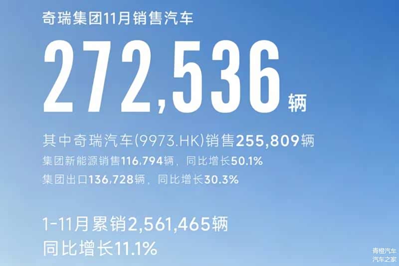 在此行业调整期,奇瑞汽车逆势突围交出了一份跑赢市场大盘的亮眼成绩单。数据显示,2025年1-11月,奇瑞汽车累计销量达256.15万辆,同比增长11.1%,累计增幅较国内车市整体水平高出5个百分点,展现出强劲的经营韧性与市场竞争力。