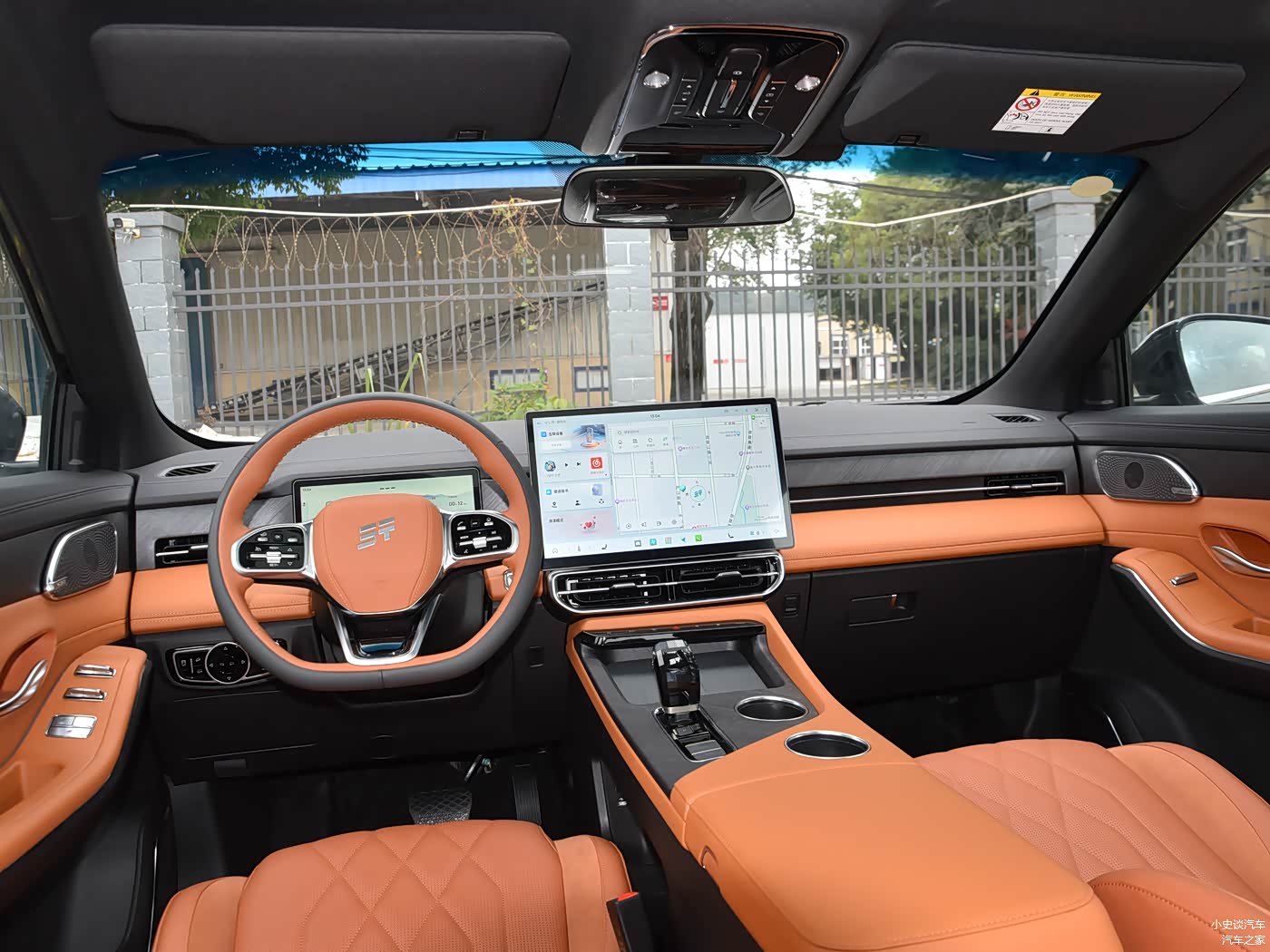 进入车内,新车采用了对称式造型设计,中控台与门板大面积覆盖 NAPPA 真皮 + 仿麂皮拼接材质,配备了12.3 英寸悬浮式液晶仪表 + 15.6 英寸无边框中控屏组成智能交互核心,搭载高通骁龙 8155 芯片与 J-Link 4.0 系统,支持四音区语音交互、AR 实景导航与华为 HiCar / 苹果 CarPlay 无线互联。空间表现方面,新车2850mm 轴距搭配七座布局,营造出宽敞通透的车内空间。180cm 乘客坐进第二排,腿部余量超两拳,头部空间一拳半,中间地板凸起仅 3cm,满员乘坐无压力;第三排座椅支持靠背角度调节,175cm 乘客乘坐时腿部仍有一拳余量,完全满足短途出行需求。