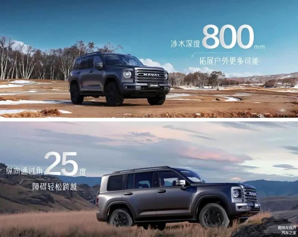 动力系统方面,新车搭载代号GW4D24的2.4T柴油发动机,官方数据显示最大功率137kW(186马力),峰值扭矩490N·m,匹配纵置9挡自动变速箱。柴油动力的优势在高原环境中尤为明显,通过“双切向进气道”燃烧系统优化,在海拔4700米的垭口仍能保持动力不衰减。底盘采用前双叉臂+后整体桥悬挂,接近角45°、离去角38°,满载状态下可通过45%坡度,垂直越障高度达600毫米,综合性能超越坦克500等同级车型。