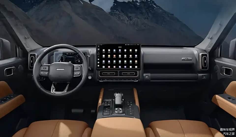 内饰以实用耐造为核心,采用黑棕双色搭配,10.25英寸液晶仪表盘与14.6英寸中控屏的搭配,兼顾了科技感与实用性。配置上完美平衡越野与舒适,不仅标配前排座椅通风/加热功能,第二排座椅靠背角度可调范围达32度,还搭载L2级辅助驾驶系统,支持30-140km/h全速域巡航与车道保持功能,高速长途行驶时可大幅缓解疲劳。作为同级少有的标配三把差速锁的车型,其前桥电控锁、中央博格华纳TOD适时四驱锁止机构与后桥机械锁的组合,配合9种驾驶模式,单轮着地即可实现脱困。