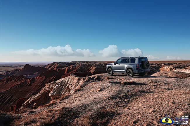 外观上,新车延续硬派越野基因,标配价值5000 元的石青灰定制色,视觉张力十足。针对穿越场景优化设计,轮眉及固定侧踏饰板采用耐磨皮纹材质,兼顾实用性与野性气场,搭配硬朗车身线条,尽显征服姿态。