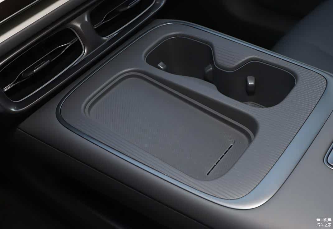 扶手台布置了单手机带50W无线充和通风散热,右侧有双手机位。
