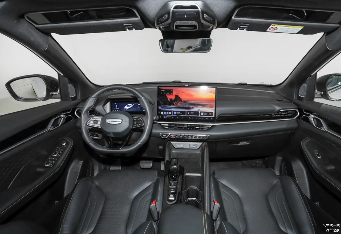 来到内饰,在布局和用料上也很厚道,上方的后视镜区域采用立体式的设计,阅读灯点亮后还是很亮。配有多功能方向盘,在车门和中控台也有软包,并且中控前方做了一个立体感,保留下的实体按键更是充满轿跑风格,经典的家族式电子档把,以及前排的水杯架和无线充都是缤越的卖点。关键座椅采用黄色缝线,工艺还是不错的,座椅的填充也很厚实,乘坐起来的包裹性不错。并且软包材质摸起来很细腻,还配有电动后视镜、电动座椅调节、以及8.8英寸的液晶仪表,14.6英寸的中控屏,可以说它内饰比瑞虎3X更有吸引力。搭配的车机系统为Flyme Auto,同样支持语音对话功能,像胎压监测、上坡辅助这些功能都有的。