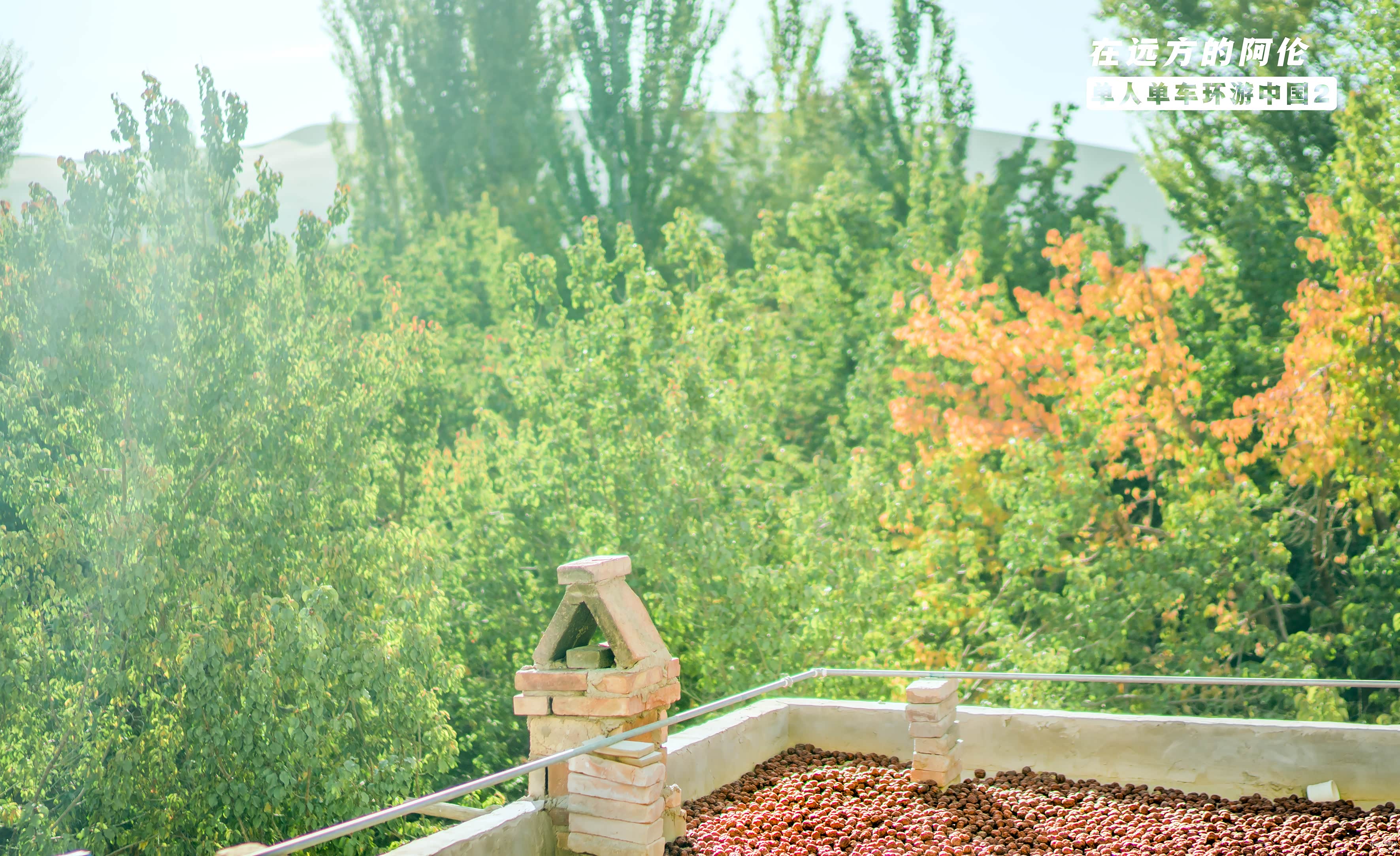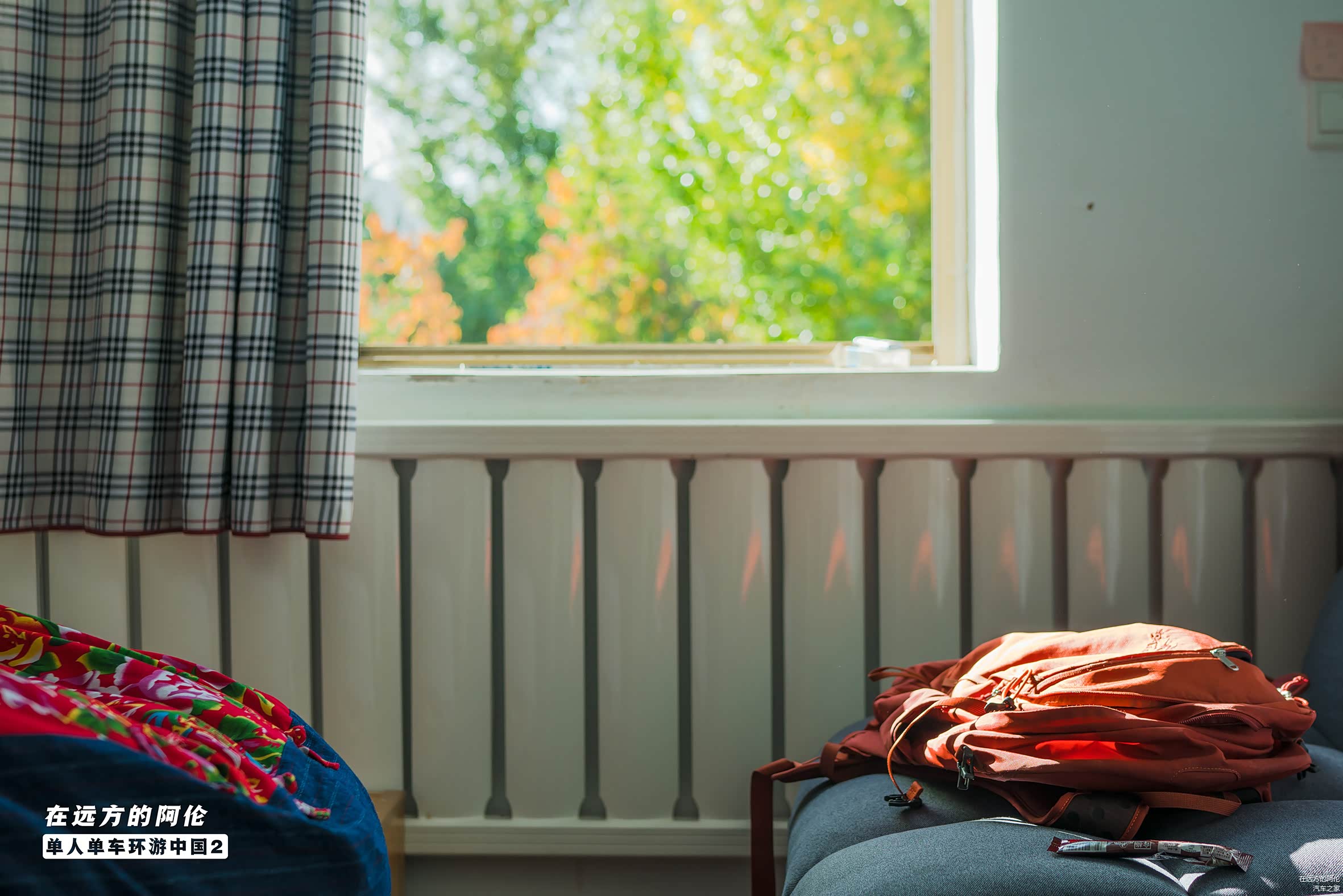 我靠在窗边看了看店家晒在楼顶上的杏仁儿,瞄了瞄深秋时分西北黄绿交织的花草树木,再望了望不远处的鸣沙山......点上一根烟,听着林间悦耳的鸟叫,心情一片大好。