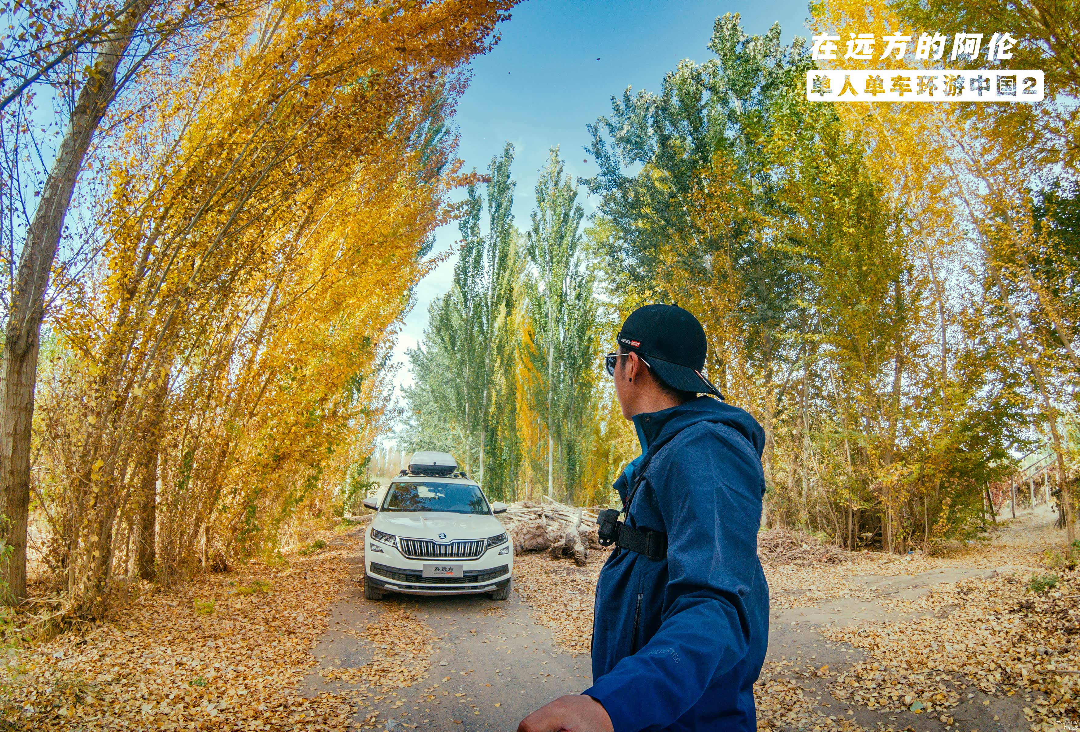 这条小路是月牙村村道的一条支路,深秋时分相当的漂亮,跟新疆的那些村道很像,我在这儿忍不住给大白胖拍了几张照片。