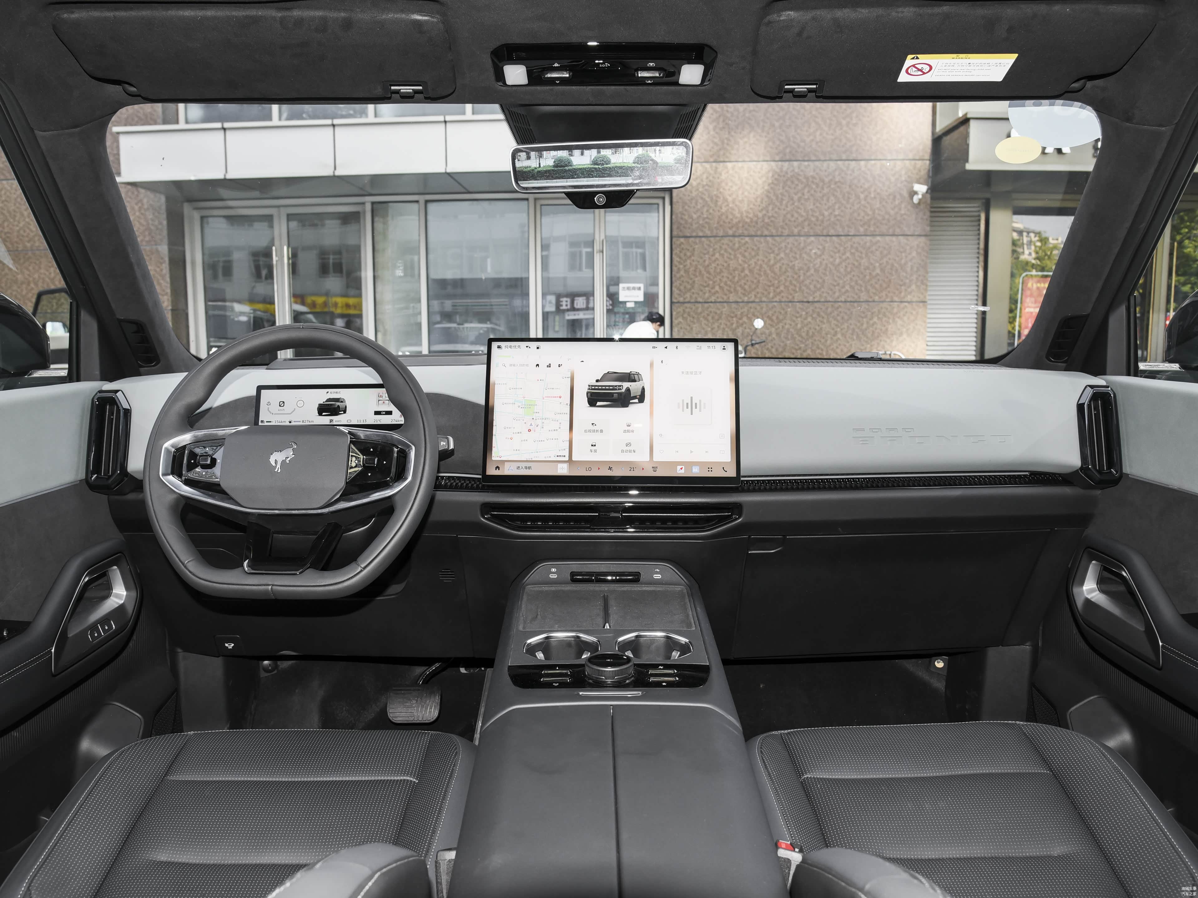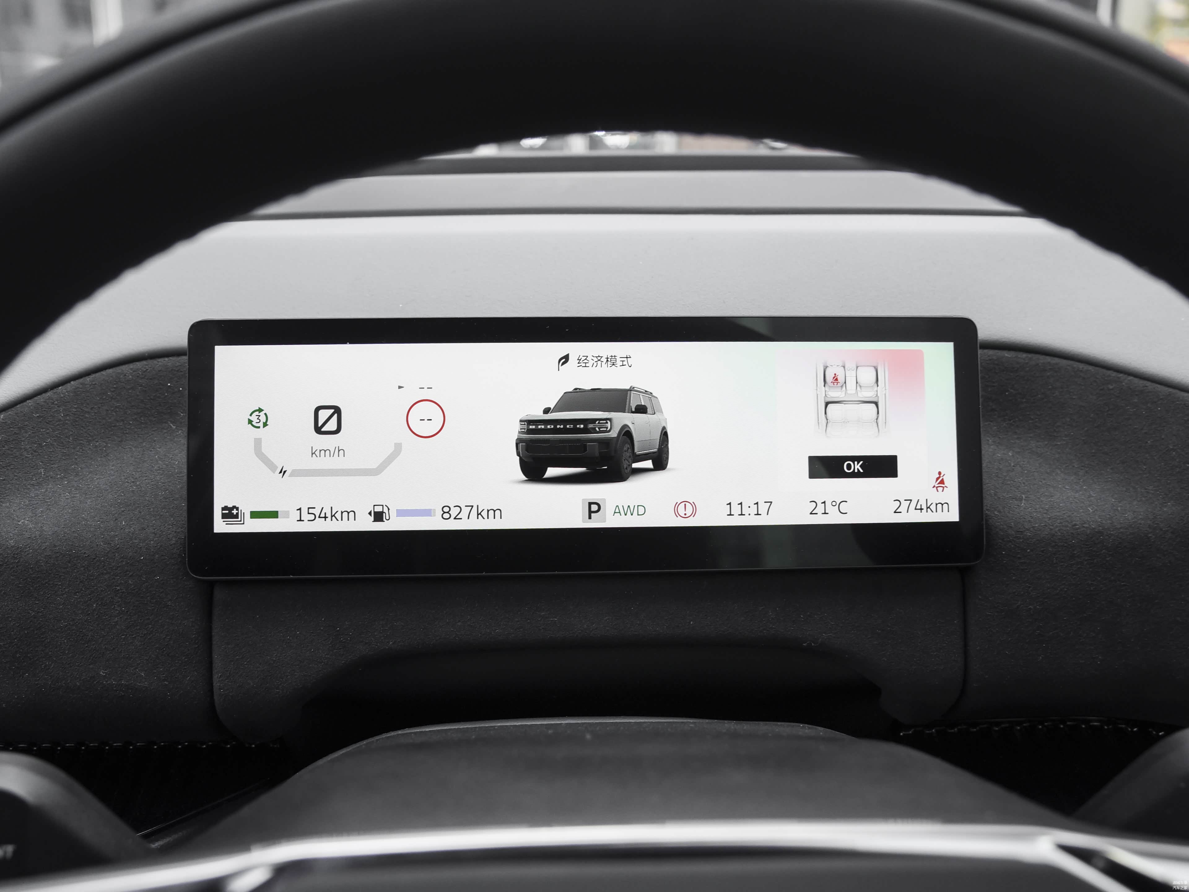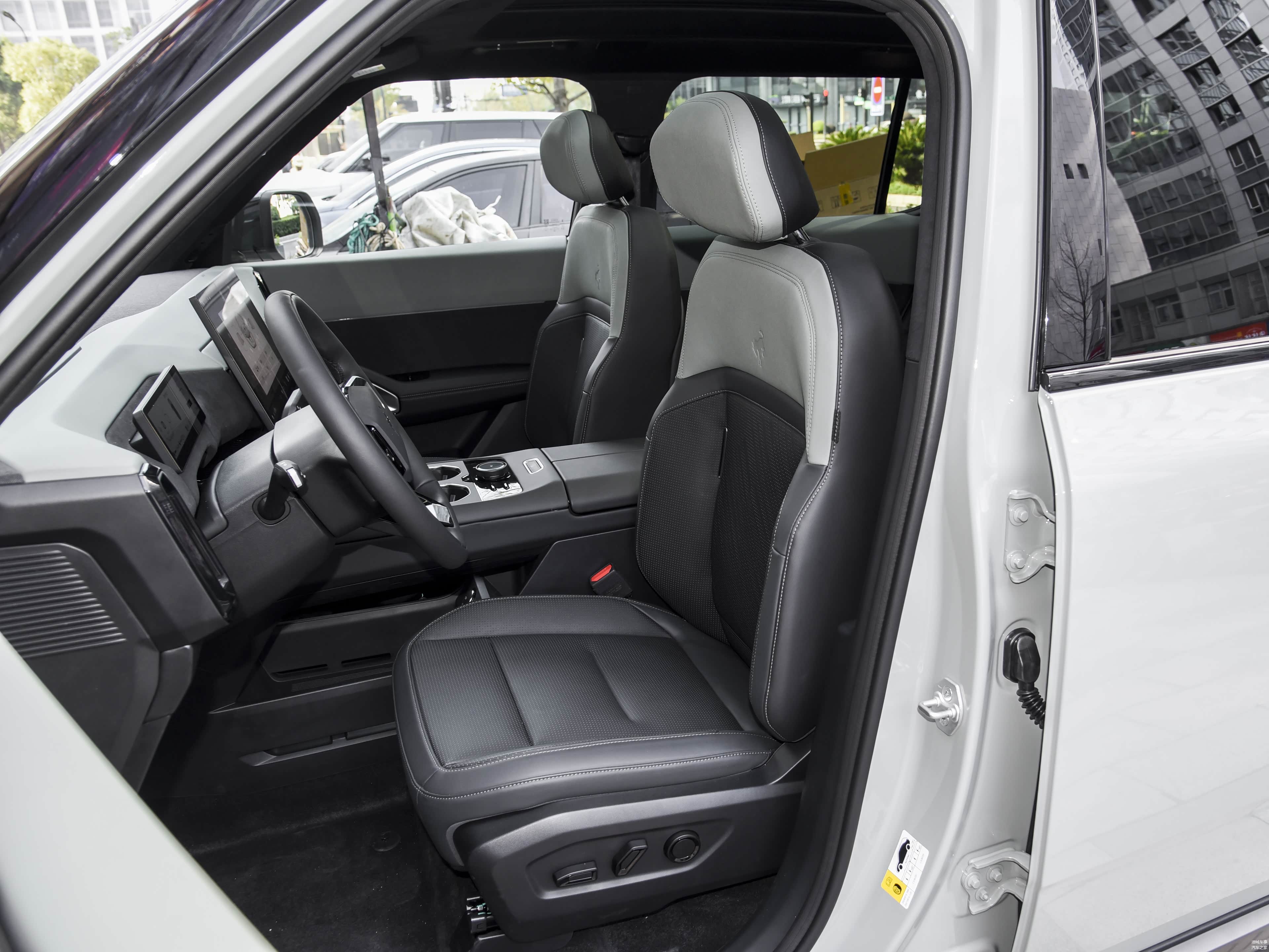动力方面是这款车的重点之一。增程版本搭载了一块容量为43.7千瓦时的电池,根据CLTC标准测算,其纯电模式下的续航里程为220公里,在配合燃油增程器的情况下,综合续航里程可达1220公里。纯电版本则配备了一块105.4千瓦时的电池组,续航里程为650公里,并支持高压快速充电技术。两款动力形式的车型都具备对外放电功能,最大功率为6.6千瓦。此外,车辆全系标配四轮驱动系统,前后轴均配备了机械式差速锁,这些硬件配置为其提供了一定的非铺装路面行驶能力。