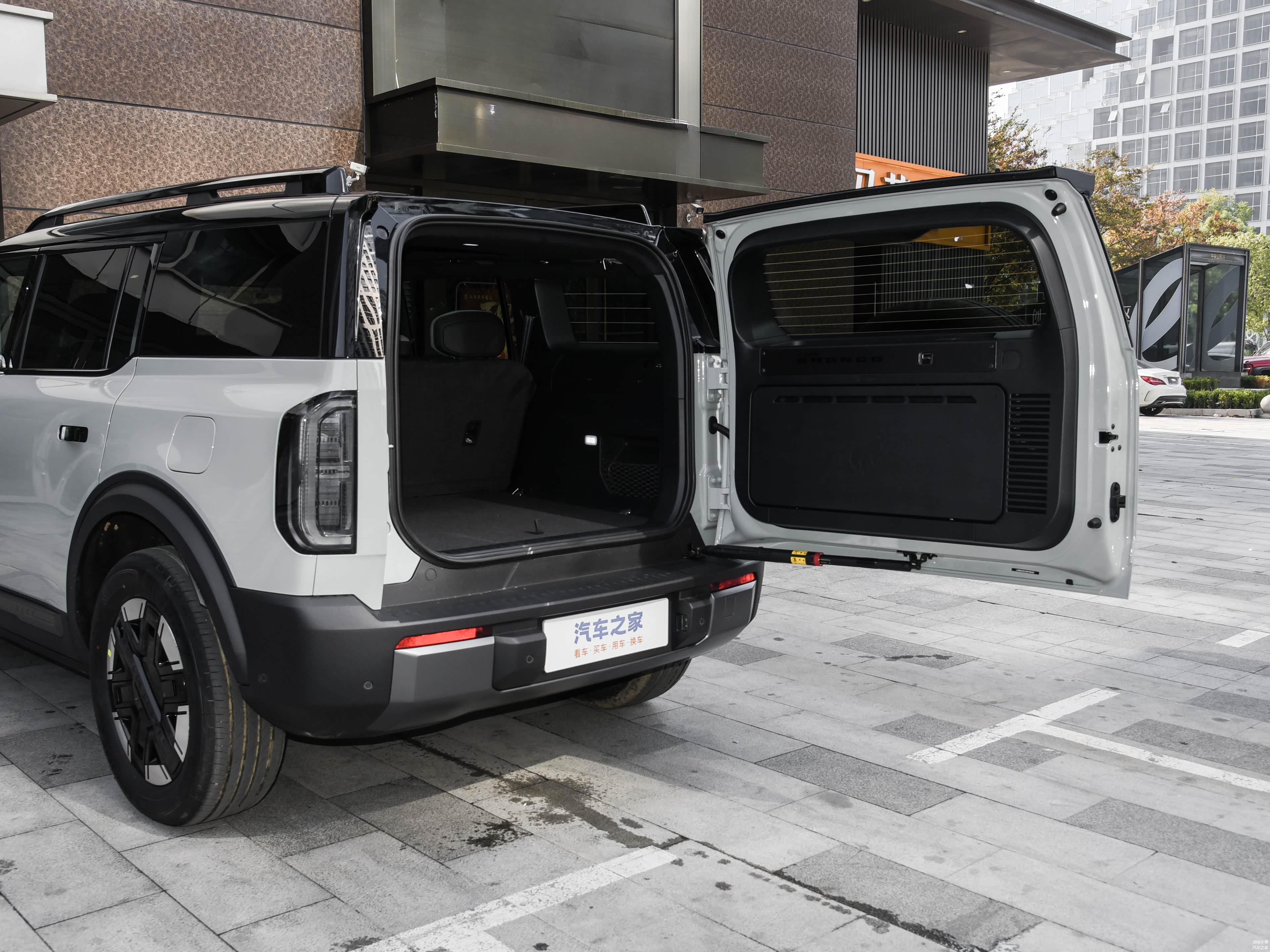 车尾部分延续了燃油版烈马的一些标志性设计,比如竖向布置的尾灯。尾门采用侧开方式,并配备了外挂式备胎,在风格上兼顾了实用与个性。