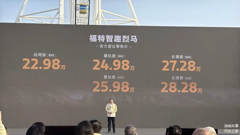 12月19日,福特旗下全新车型“智趣烈马”正式公布售价并启动交付。此次推出的车型共有5个配置,价格从22.98万元到28.28万元不等。该车型提供了纯电与增程两种动力选择,并装备了激光雷达等硬件以支持高级辅助驾驶功能。