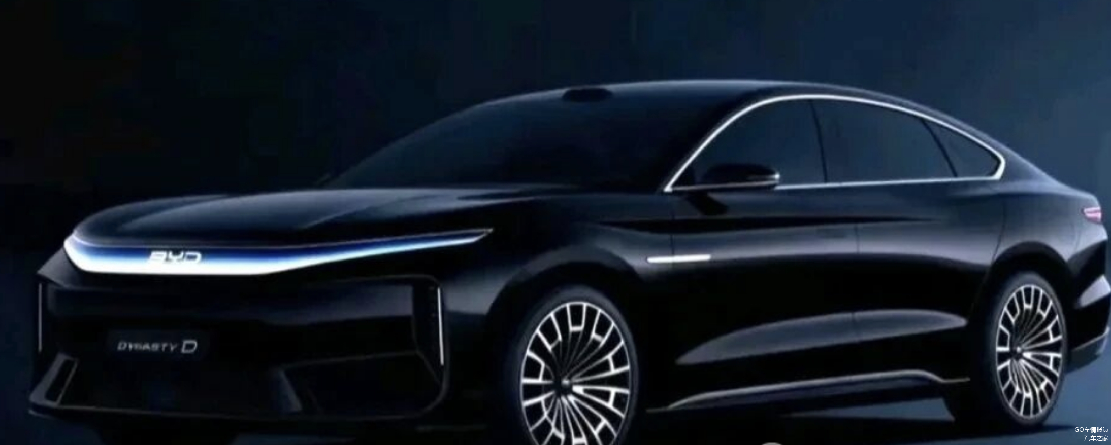 网上有一张大汉的假想图,车头大灯的还原还是比较接近的,饰条的形状更加飘逸,和大灯的融合度更高,不知道这是旗舰车型专享的设计,还是之后会下放到其他车型。关于车尾造型,目前还没有过多的信息披露,但可以肯定的是,贯穿式尾灯+中国结元素应该是保留的。