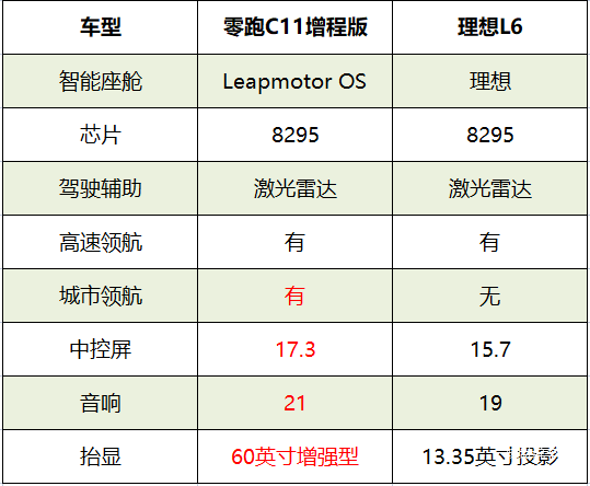 行驶在路上,呈现在你眼前的,零跑C11是60英寸的增强型HUD抬显系统,可以根据自己的需要,来显示车辆、导航、驾驶辅助、多媒体等,无需低头就能掌握多项车辆信息;理想L6 Pro则提供一块13.35英寸的HUD投影,智能显示简单的车速等信息。