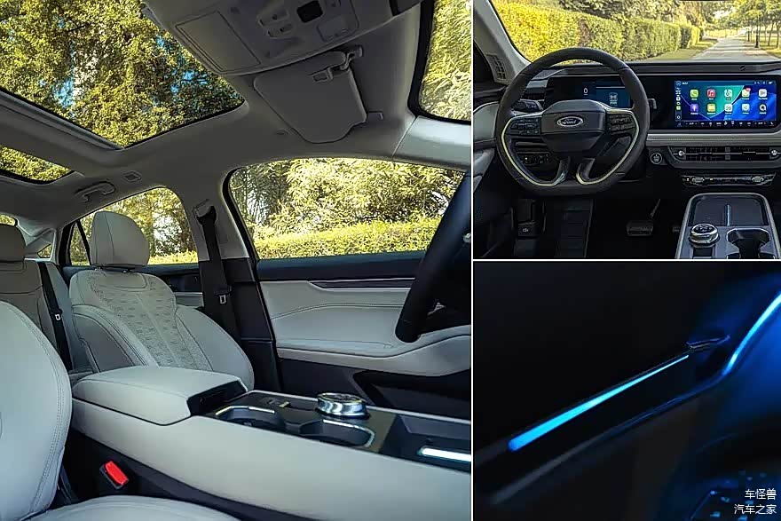 当你走进车里,你会发现内部装饰的布局发生了一些新的调整。原先设计为“悬浮式”控制台的贯通式中央扶手箱,现在还增加了两个开放式的杯架,而顶配车型则进一步增添了无线充电的功能。然而,这款新的金牛座车型并没有选择中国版的蒙迪欧那种充满科技氛围的27英寸大联屏,而是选择了一个8英寸的仪表盘和13.2英寸的中控屏组合,这不仅满足了日常使用的需求,而且更加强调了其实用性。
