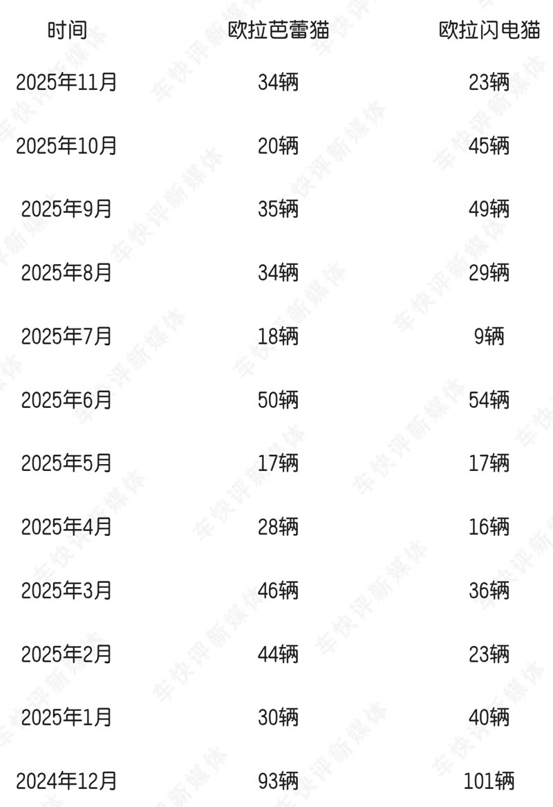 更要命的是,欧拉的芭蕾猫以及闪电猫这两款车,不仅相比竞品车型在产品力上平平无奇,售价也是高得离谱。虽然后期欧拉汽车对芭蕾猫和闪电猫售价都进行了下调,但仍然没有挽回这两款车惨淡的销量表现。销量数据显示,进入到2025年之后欧拉芭蕾猫和闪电猫两款车的单月销量,居然都没有能够突破三位数。