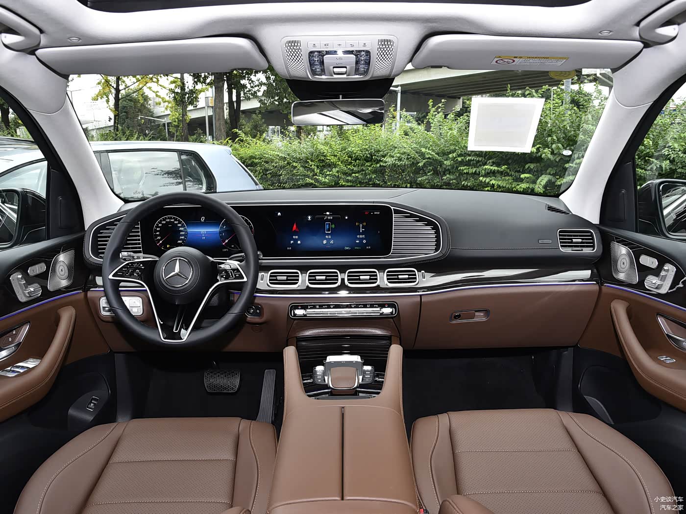 进入车内,2026款奔驰GLE以环抱式中控台设计营造沉浸式豪华氛围,环绕式饰板搭配双12.3英寸高清显示屏,延续家族经典的双联屏布局,视觉效果流畅且信息显示清晰。全系标配的Nappa皮饰多功能方向盘质感细腻,空调出风口采用镀锌金属材质,搭配64色环境氛围照明系统,可切换九种自然色彩主题,营造出美轮美奂的座舱氛围。空间方面,后排腿部空间充裕,身高185cm的乘客也能轻松翘二郎腿。座椅支持电动调节、加热/通风/按摩功能,中央扶手带触控屏可独立控制空调与娱乐系统。后备箱容积达630L,可轻松容纳露营装备与婴儿车,实用性满分。