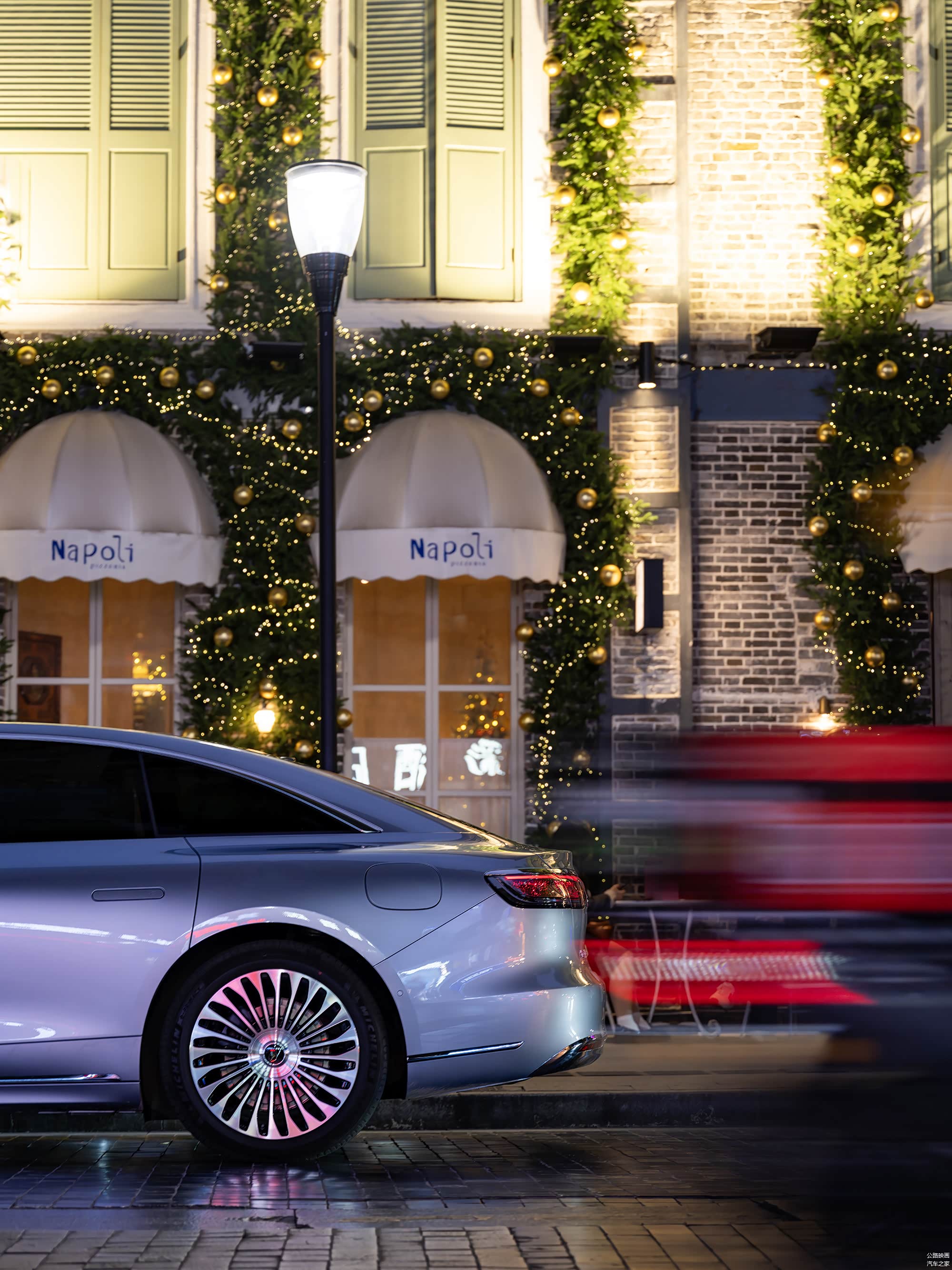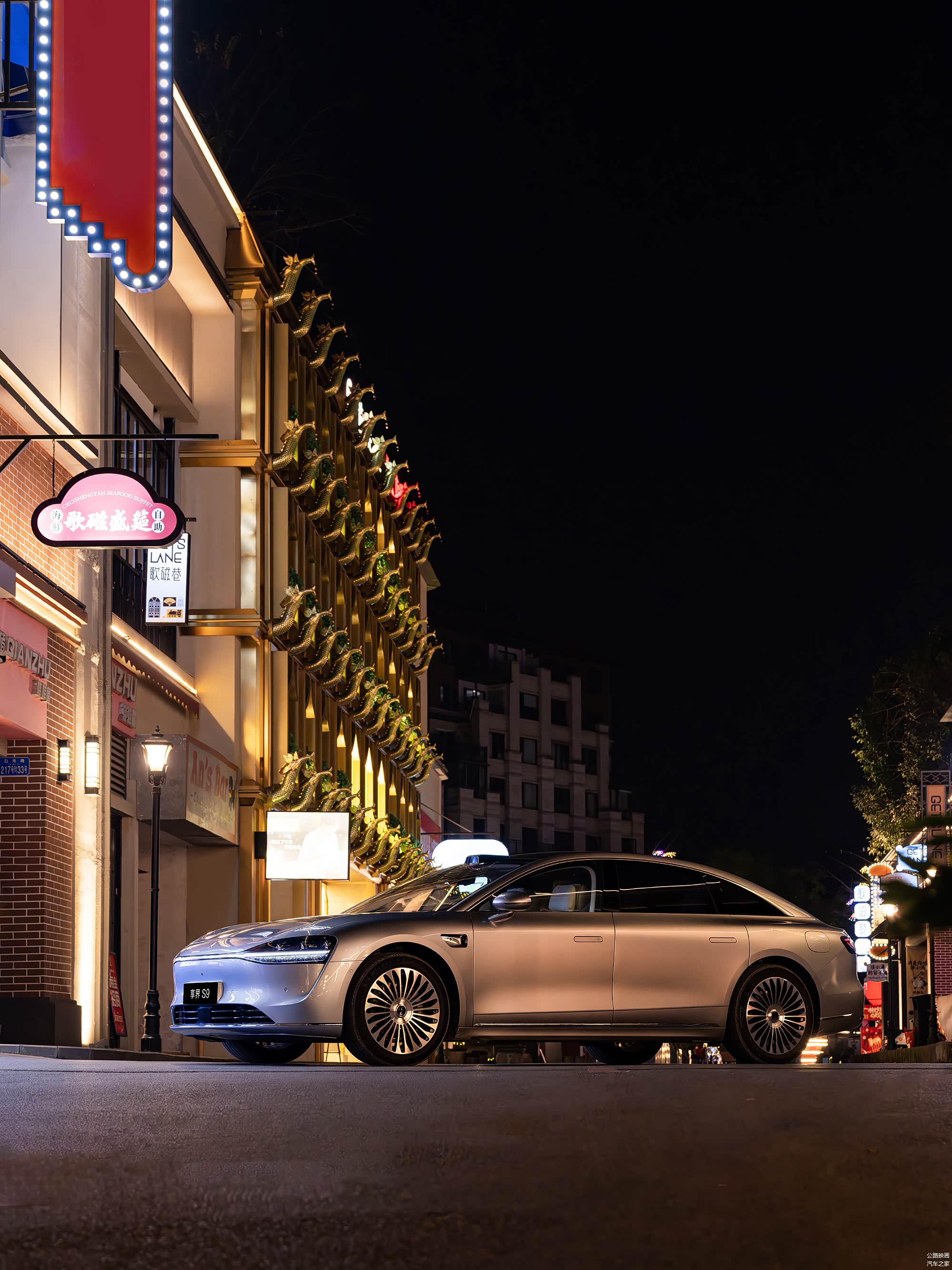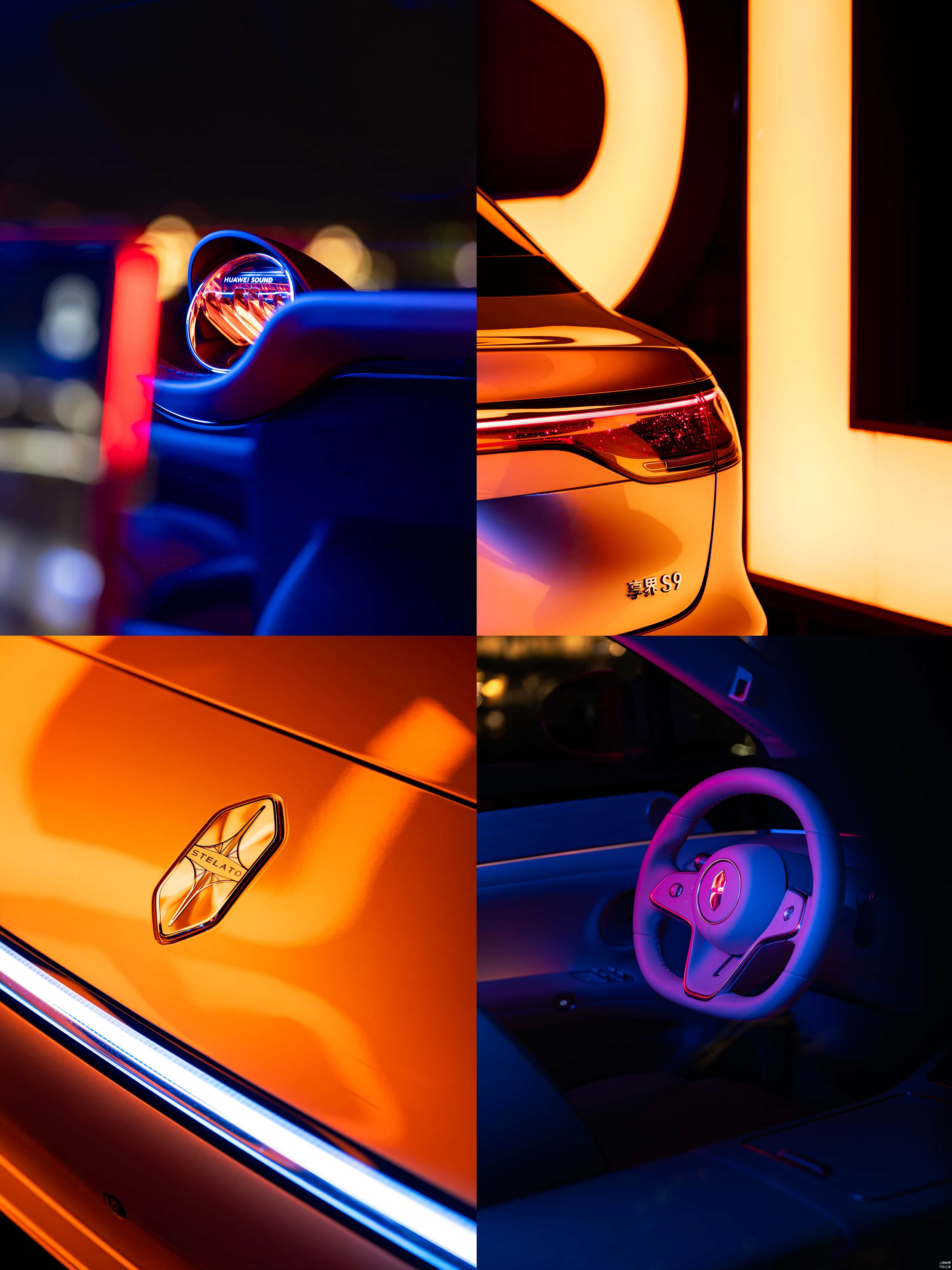 城市夜景仿佛化身为一个充满情绪的舞台,反射、剪影和质感焕发出无法复制的生命力,我能感受到身旁这台享界S9心跳随之加快,车身反射幻化成它的霓裳