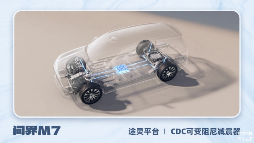 问界M7的配置表未有最小转弯半径数据,车辆底盘搭载CDC可变阻尼减振器,同时四驱系统能实时根据路面状况智能分配扭矩,在冰雪、坑洼等复杂路面保障我们的行车安全,这一点相比较老款M7有升级。