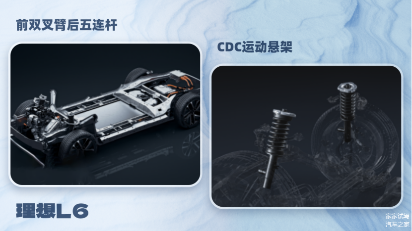 理想L6配备了电四驱系统和CDC连续可变阻尼悬架,悬架调校偏向家用舒适,最小转弯半径为5.9米,其实品牌可以考虑为用户提供一套后轮转向系统。四驱系统在冰雪路面上可提供有效的抓地力,保障大家的行驶安全,但若遇到爆胎这种极端情况,会比较考验驾驶员的信心及驾驶技巧。