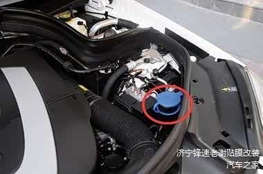 引擎盖打开后,你需要在发动机舱的左侧寻找一个标有雨刮标志的蓝色盖子,这便是加注玻璃水的入口。