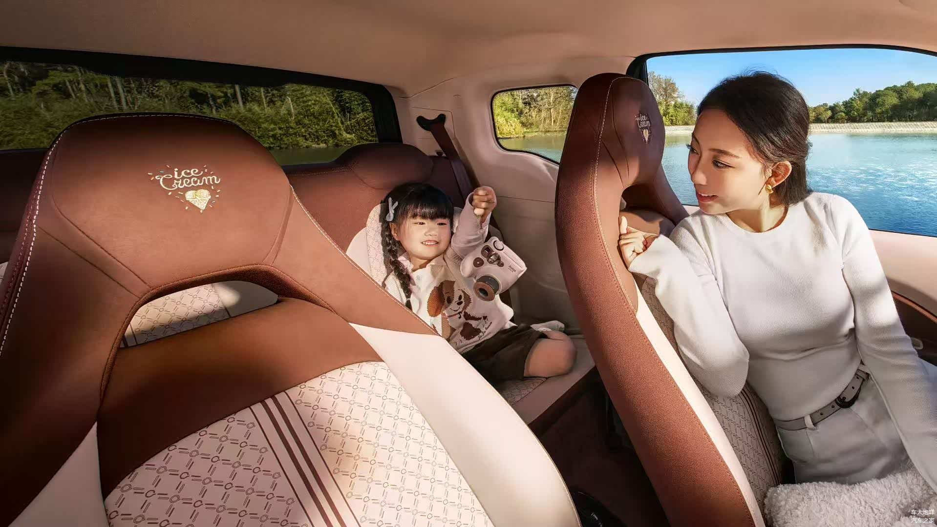 内饰方面,2026款奇瑞QQ冰淇淋采用全新贯穿式空调出风口设计,悬浮式中控屏下方区域仍保留部分旋钮和按键,但材质和涂装发生了变化,相比在售2025款车型看起来更加精致。另外,2026款奇瑞QQ冰淇淋前排座椅采用全新纹理设计,头枕位置增加了冰淇淋图案及相关英文字样。