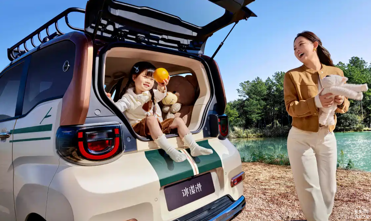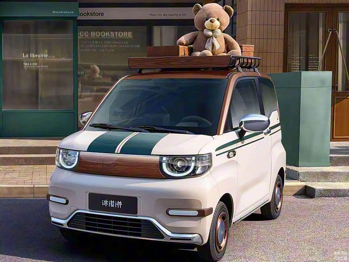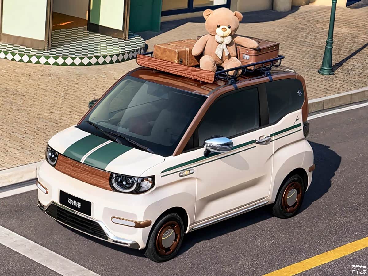 外观方面,2026款QQ冰淇淋女王版的车身以木纹和绿色拉花点缀,格栅的木纹元素与前舱盖的绿色拉花有着不错的辨识度,底部进气口边缘加入了镀铬点缀,新前脸复古中透着精致感。新车侧面以绿色拉花作为腰线,紫铜色轮圈也点题,车顶行李架同样以木纹饰板装饰,尾部的绿色拉花与车头相呼应。