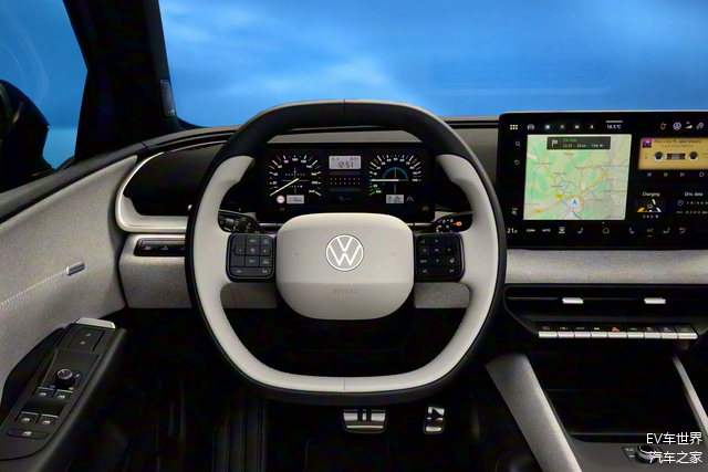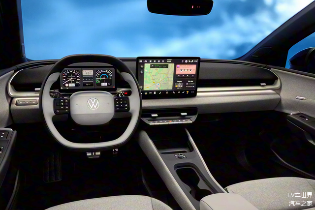 ID.POLO的内饰延续了ID.2all概念车的整体设计布局,内饰采用大量的软性织物材质进行包裹,并采用双拼配色,配备10.25英寸仪表盘以及13英寸中控屏,中控屏下方还保留大量的物理按键。