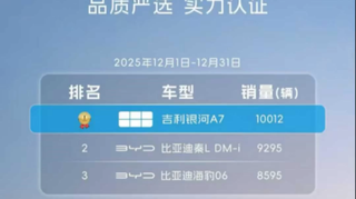 吉利银河A7稳摘12月中型插混轿车销冠