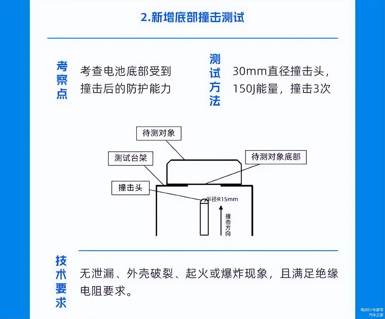 例如底部撞击测试要求模拟车辆托底时电池受损情况,这是对日常驾驶中常见风险的直接回应。
