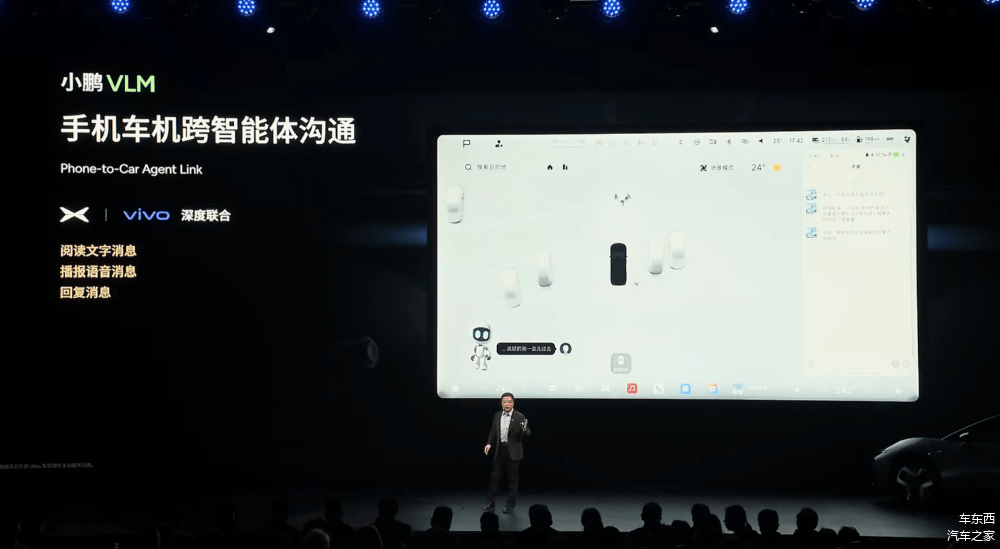 基于小鹏和VIVO的深度合作,小鹏VLM可实现手机车机跨智能体沟通,可以唤醒智能助手回微信消息,将实现从泛化沟通到情感沟通,同时符合全球隐私标准。