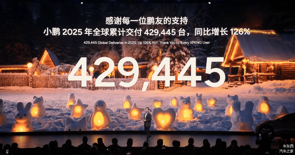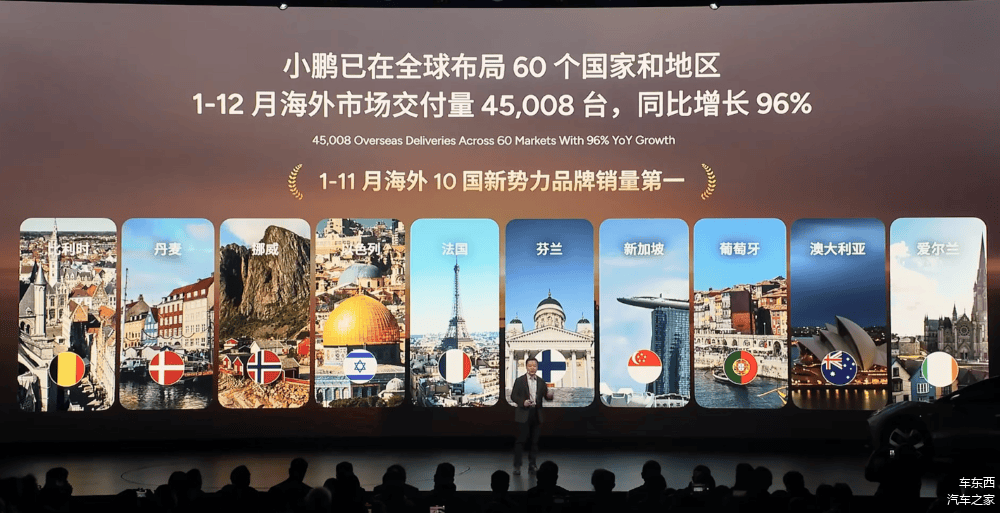 他还十分自豪地介绍了小鹏汽车出海成果,2025年小鹏海外交付4.5万台,同比增长96%,占全年销量超10%,进入了全球60个国家和地区。