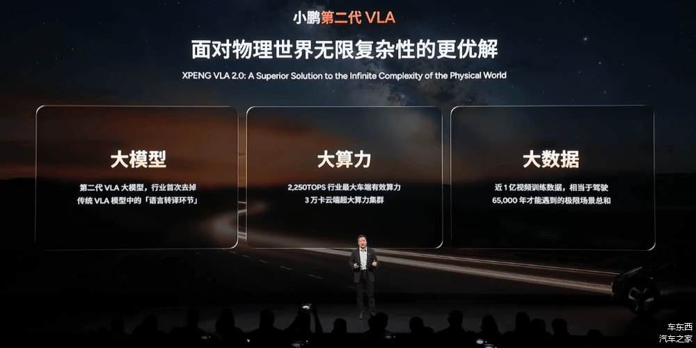 何小鹏表示,小鹏第二代VLA是面对物理世界无限复杂性的更优解,将快速地带来接近L4的智驾体验。